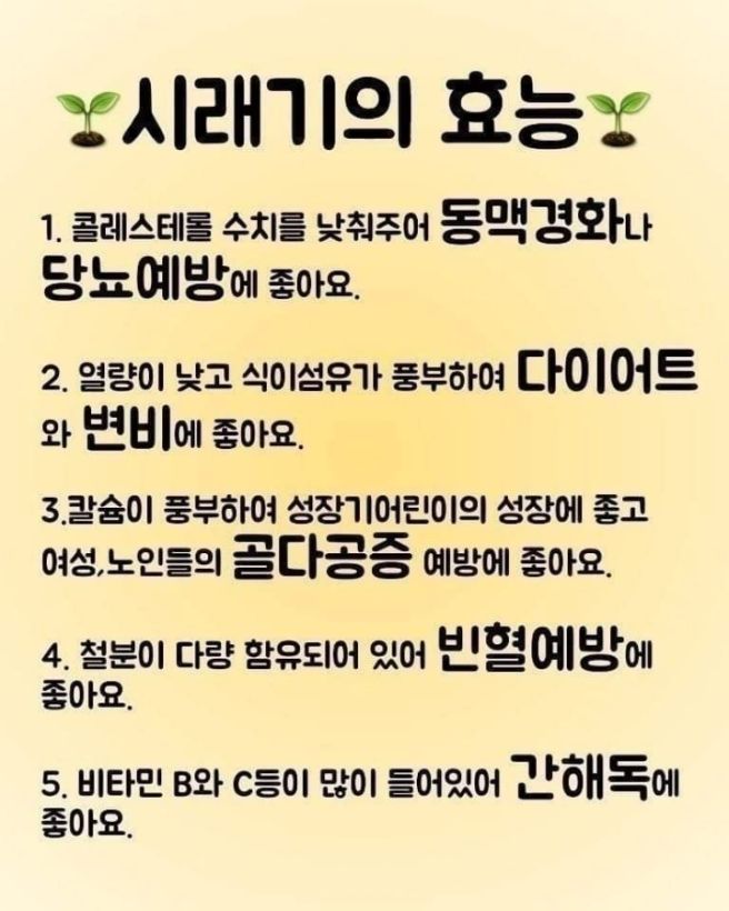 하지만 무청(시래기)의 효능과 성질은 잎 과 줄기에 대한 설명 속에 자세히 나옵니다.