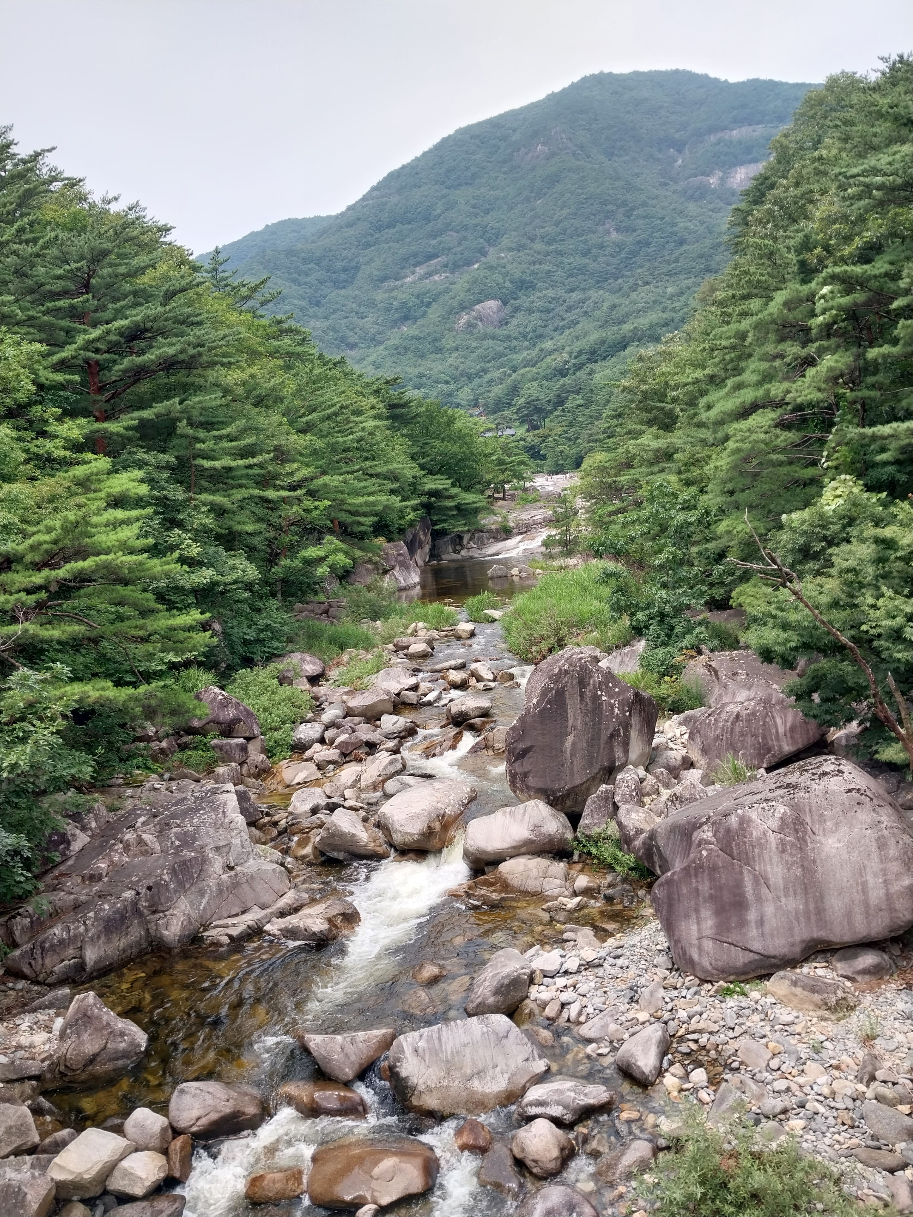 아름다운 무릉계곡에 동생과 나는 옷을 입은채 물속에 들어갔다.