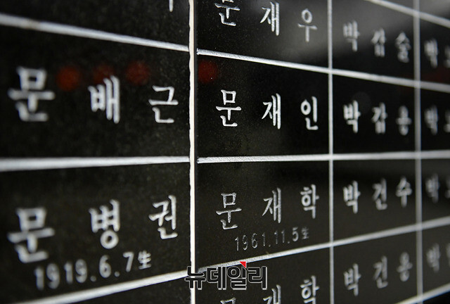 ▲ 광주 서구 5·18 기념공원 지하 추모승화공간 벽면에 새겨진 '문재인'씨. 그는 5·18 피해자로 인정돼 벽면에 새겨졌으며, 문재인 대통령과 단순 동명이인인 것으로 밝혀졌다. ⓒ정상윤 기자