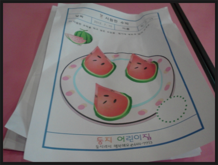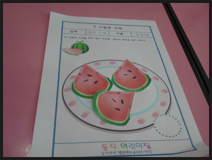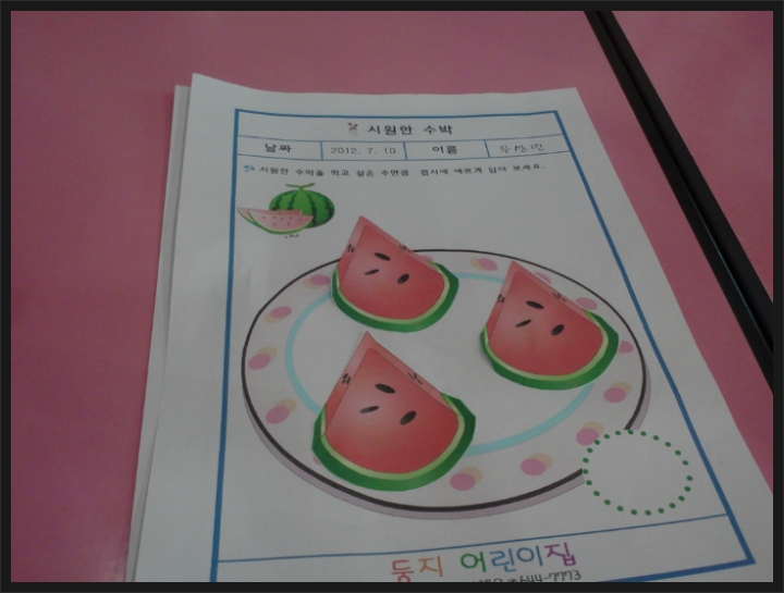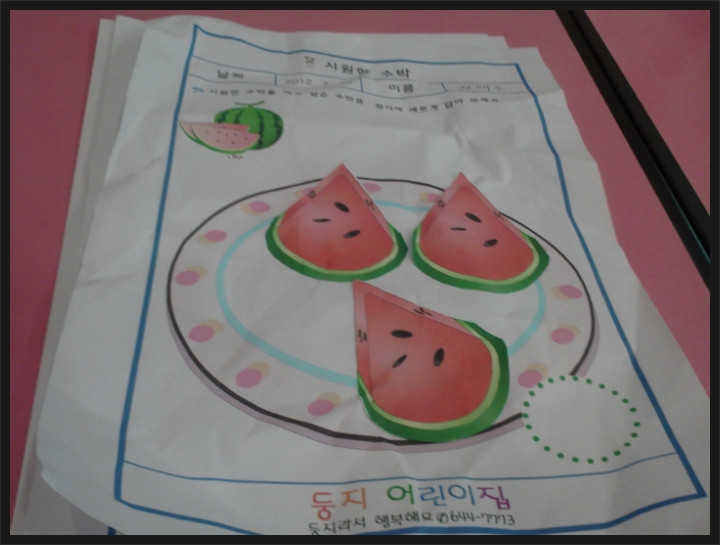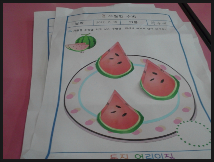 수박을 접시에 담았어요. 작성자행복맘|작성시간12.07.14|조회수15 목록 댓글 2 글자크기 작게가 글자크기 크게가 수박을 접시에 예쁘게 담아봤어요. 얼마나 예쁘게 잘 담았는지... 시원한 수박 드세용~~ 다음검색 현재 게시글 추가 기능 열기 북마크 공유하기 신고 센터로 신고 댓글 댓글 2 댓글쓰기 답글쓰기 댓글 리스트 작성자김현빈맘 | 작성시간 12.07.16 수박너무 맛있어보여욧ㅎ접시에도잘담고 기특기특ㅎ 작성자세은어뭉 | 작성시간 12.07.20 세은이는종이를다구겨버렸나봐요!?요즈음 책이며 종이로댄건 뭐든찢으려하던데... 댓글 전체보기