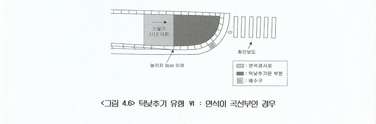 연석이 곡선인 경우에는 4.4.3의 턱낮추기 유형Ⅰ의 기준을 적용한다.