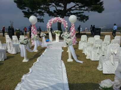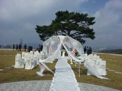 산꼭대기에서 결혼식이 최초로 진행 되었다. 해발 800미터나 되는 곳에서 음향과 결혼이벤트 일체와 세종뷔페 음식을 그리고 테이블과 의자등 힘이 들었지만 의미 있었다 400명이 넘는 손님과 관광객여러분들이 오셔서 함께 식사하고...
