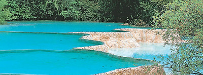 주황공항이라는 이름에서도 알 수 있듯 이 지역의 매혹적인 볼거리는 주자이거우에만 있는 것이 아니다. 주자이거우의 호수들이 양 갈래로 펼쳐진 산자락 품에 아늑하게 안긴 비경이라면 황룽(黃龍)의 신비로운 물줄기는 용틀임하듯 솟구치는 산줄기를 휘감은 선경(仙境)이다.