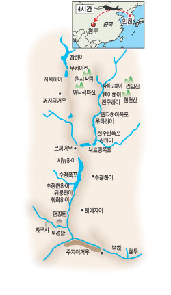 계곡 상단의 창하이. 협곡(수면 너비 200m)을 점령한 검푸른 물은 ‘S’자형 계곡을 채운다. 길이 4390m의 호수는 평균수심이 80m. 수면의 고도는 백두산 천지(2199.6m·북한자료)보다도 무려 950m나 더 높다. 우차이츠(五彩池)와 우화하이(五花海)의 비색은 108개 호수 중 백미다. 손을 담그면 파랗게 물 들것 같은 파란색 물빛은 지상의 것이 아니다. 어찌나 투명한지 3m 물 속 바닥이 어항처럼 들여다보인다. 놀라운 것은 썩지도 않고 원래 모습 그대로 물 속에 잠긴 나무다. 물에 함유된 탄산가스에 의해 코팅되어 그렇다는 설명이다. 전주탄(珍珠潭)폭포는 상상의 한계를 시험할 만큼 그 지형이 기이하다. 범람한 강물처럼 너른 구릉을 뒤덮은 채 흐른다. 그 끝 절벽에 형성된 폭포의 낙수. 신부의 면사포처럼 바위를 덮은 채 하늘거린다. 이 밖에도 절경은 많다. 온통 갈대로 뒤덮인 갈대호수, 판다가 잘 먹는 대나무 서식지의 슝마오하이(雄猫海), 금빛의 가는 대나무 자생지 진주하이(金竹海), 청초한 초록빛의 물색이 아름다운 우화하이, 비색의 호수 19개가 낙차 50여m의 계곡에 계단처럼 형성된 수정췬하이(樹正群海)…. 원시림 우거진 깊은 계곡을 연못과 호수, 폭포를 벗해 산책하는 주자이거우 여행. 폐부에 가득한 도시의 티끌이 청정한 공기와 숲 향기에 깨끗이 정화되는 느낌이다.