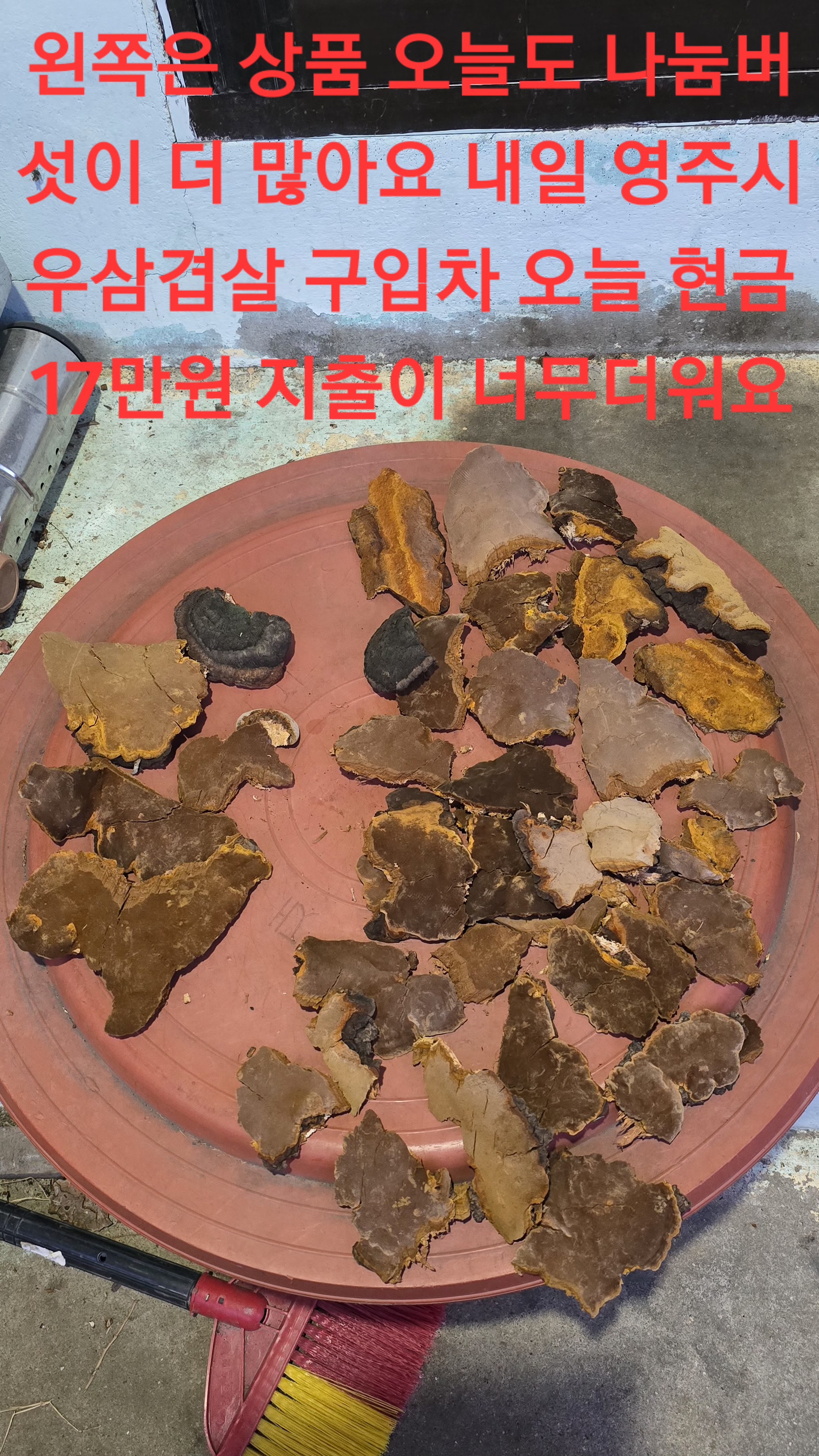아침기상시 기온상승 최근 나눔버섯들 은풍 철골소 두분께 도로가 예전 오토바이상사 했던 후배에도 나눔 용문우체국에도 두분께 나눔후 곳곳을 목청답사시 2년전에도 근처서 벌목 또 3곳서 목청벌목 답답 두릅군락지 지인몇분께 공개한곳 현금받고 다시 공개할까?생각도 옹벽석청지 역시나 없고 송전교회전 예전 대박지 벌은. 안보이고 상품적게 나눔버섯 더 많게 수확후 다시 여러곳 수색하다 앞전 수확지 산북면인줄?산양면?