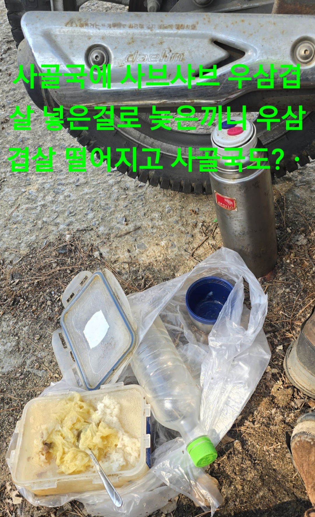 이곳서 사골국에 우삼겹실 샤브샤브 점심을 우삼겹살 다시구입해야?사골국도 현재 새로히 끓이고 있고 용궁면 쌀두포 구입 한포는 일산 형님께 읍내서 헬멧카바 교체 다진마늘 쌀통?작은가방도 주문것 구입 귀가시 은풍우체국서 커피마시고 귀가하다 보호수 토봉몇마리 보고 집도착시 세탁기 돌리고 사골국도 찜통에 수확물도 3월10일경 진달래 개나리꽃이 아직도 큰일입니다 오늘 무지 더웠네요