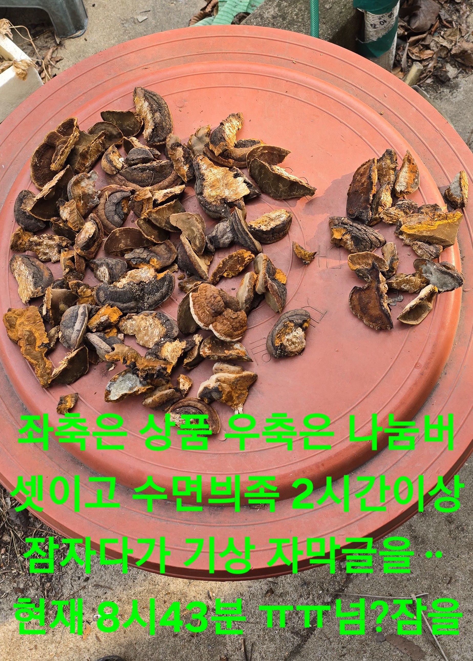 울타리 벗어나 산으로 수확후 하산은 쉽게 하산 하산후 홈풀러스 우삼겹살 광우병땀시?인상 된장 10포 사려다 3포만 구입후 안정서 반땅넣고 휴지도 얻고 모래재 공사중?4시30분 도착후 2시간 이상 넘 많이 잠을 잣어요ㅠㅠ내일은 읍네로 이동 생활필수품 구입차로 봄철 야광복 두벌 마눌에 부탁 주문했는데 4월초에 도착예정?지인들께 먼저 보내는중임ᆢ