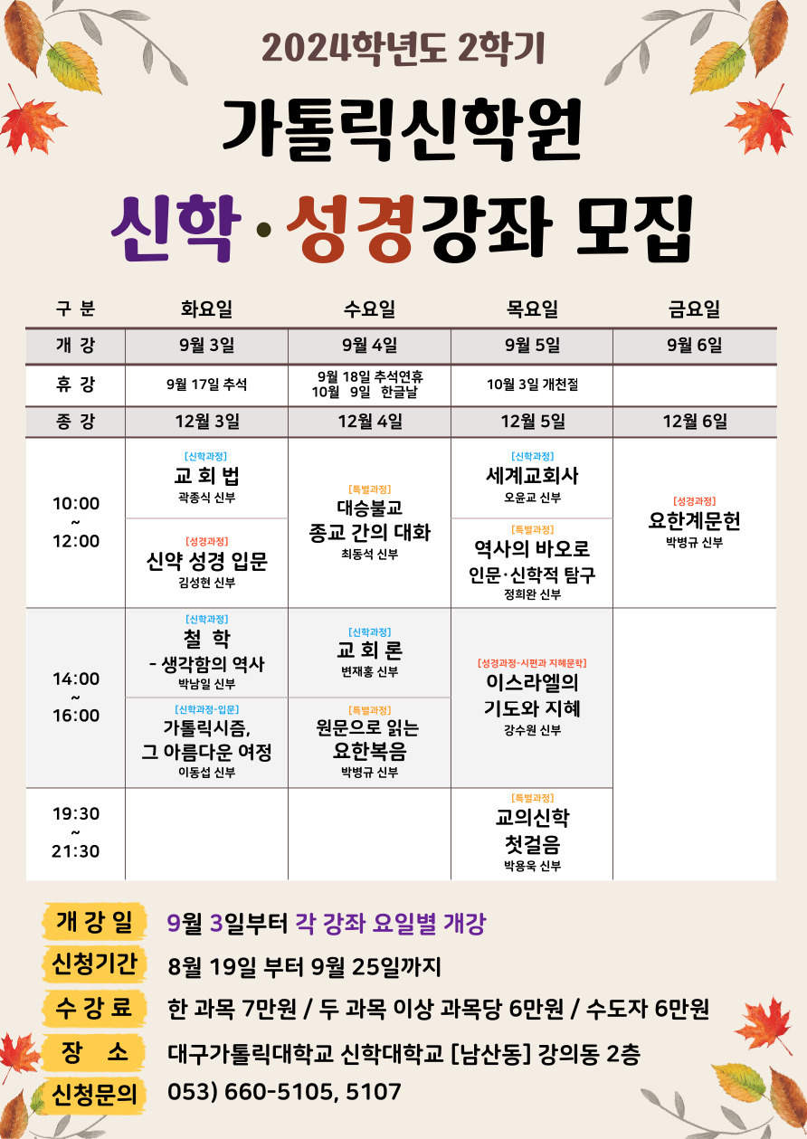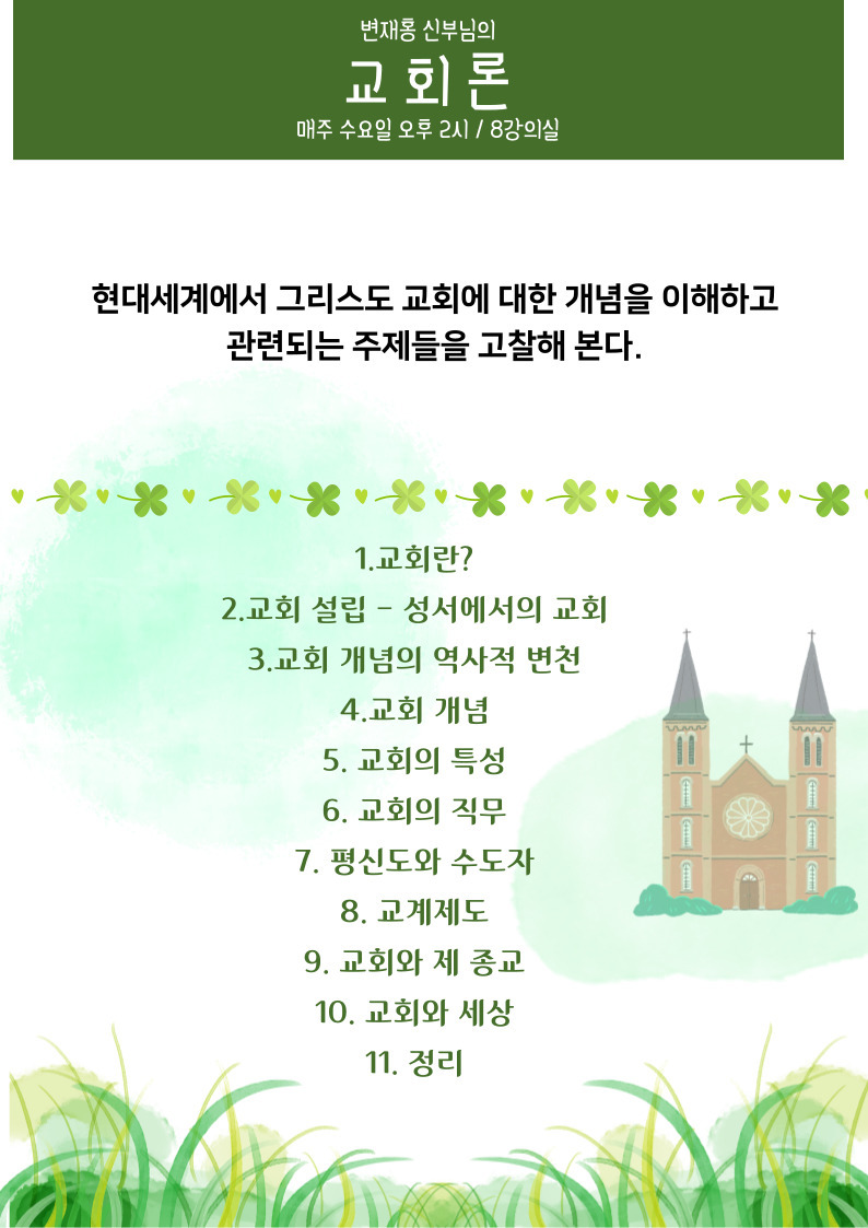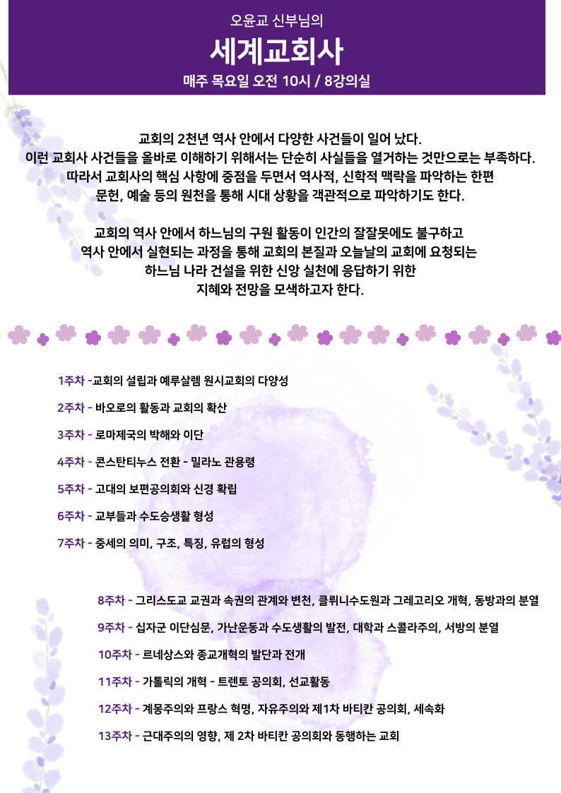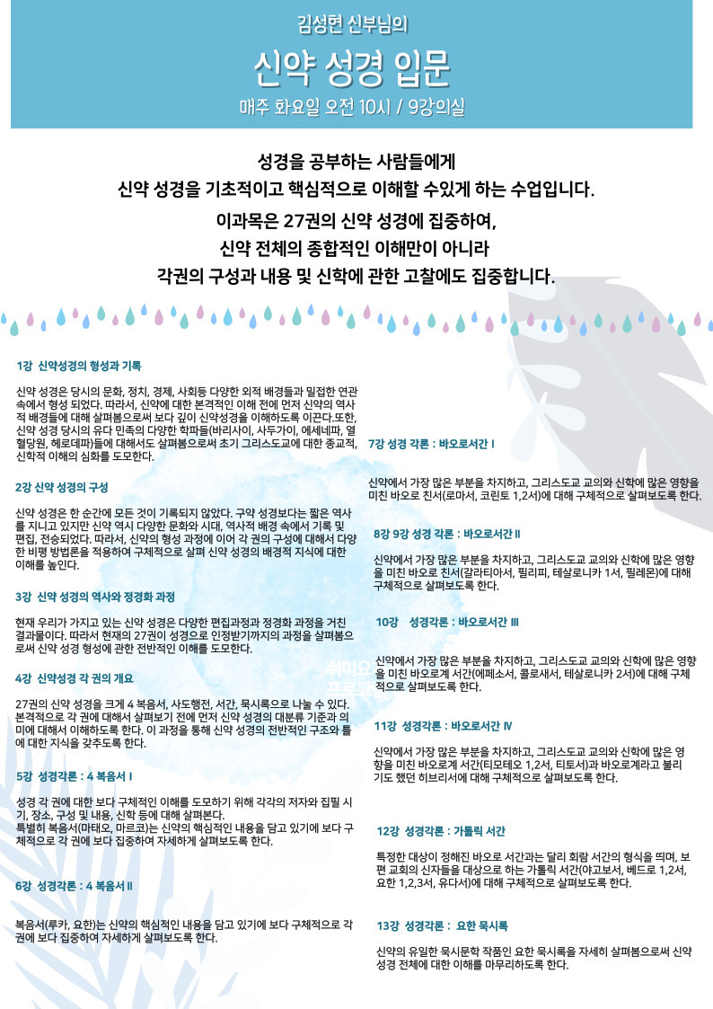 9월 13일 (금) 추석 휴강 - 신학교 일정에 맞춰 변경되었습니다.