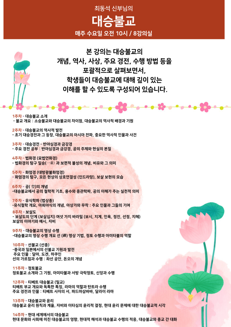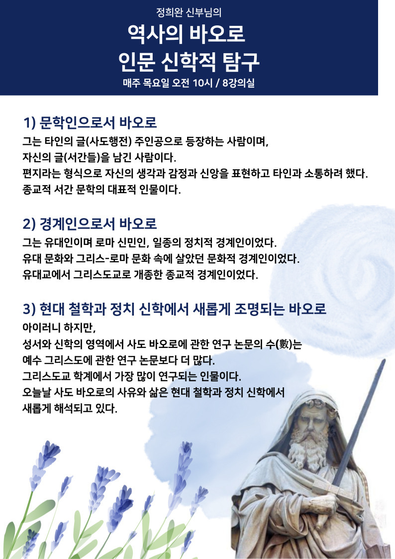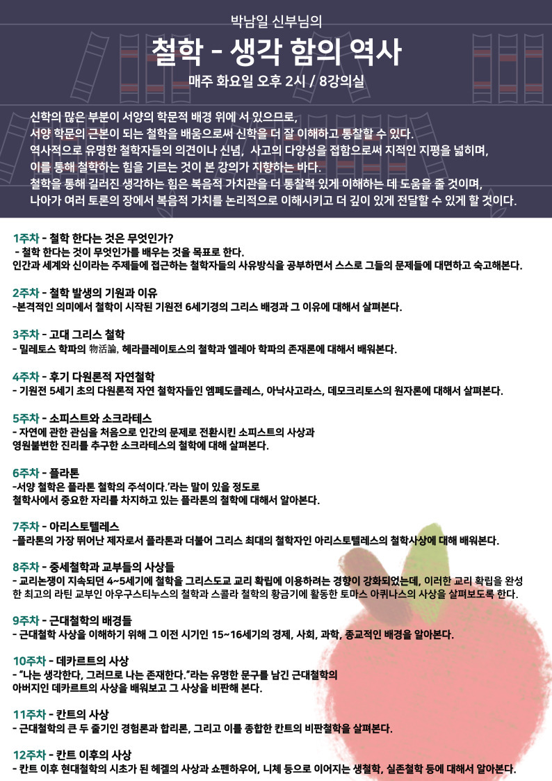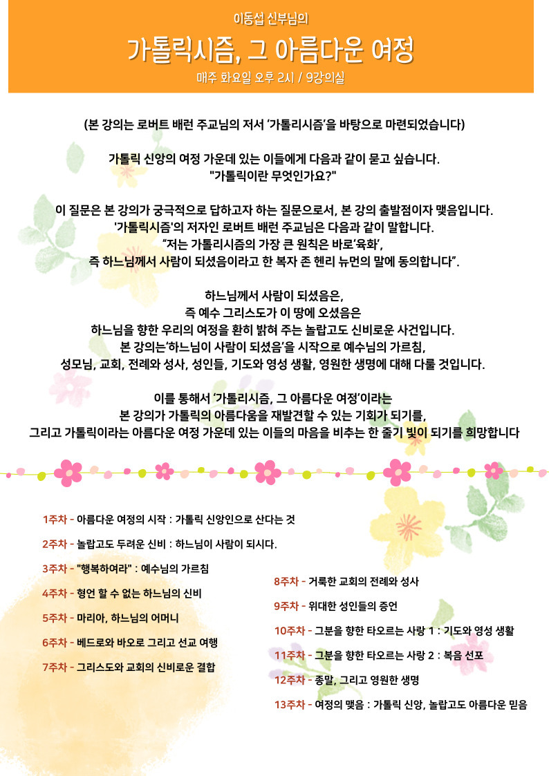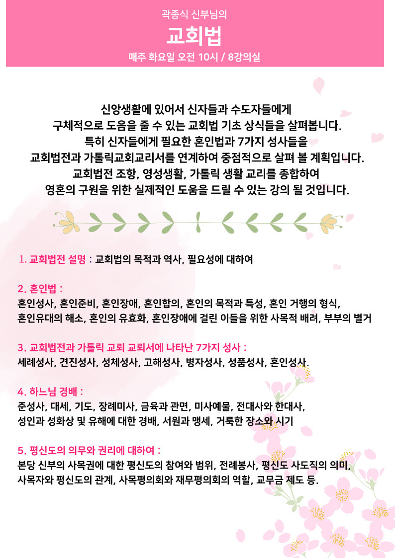 9월 13일 (금) 추석 휴강 - 신학교 일정에 맞춰 변경되었습니다.