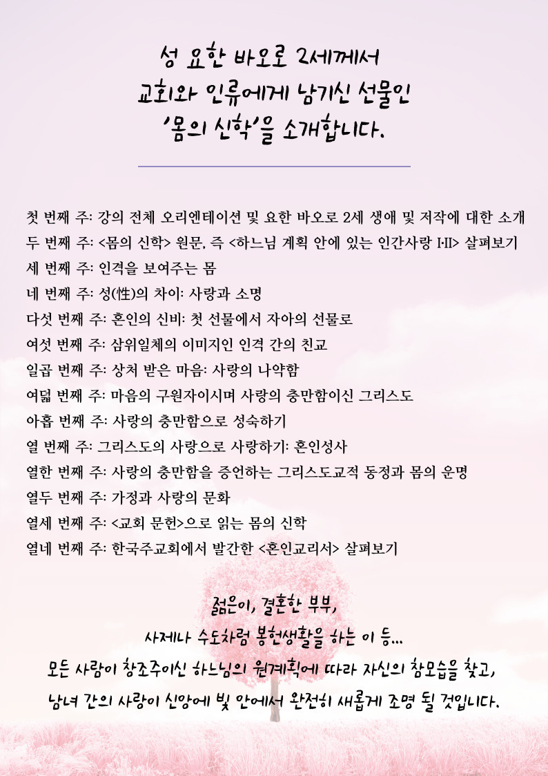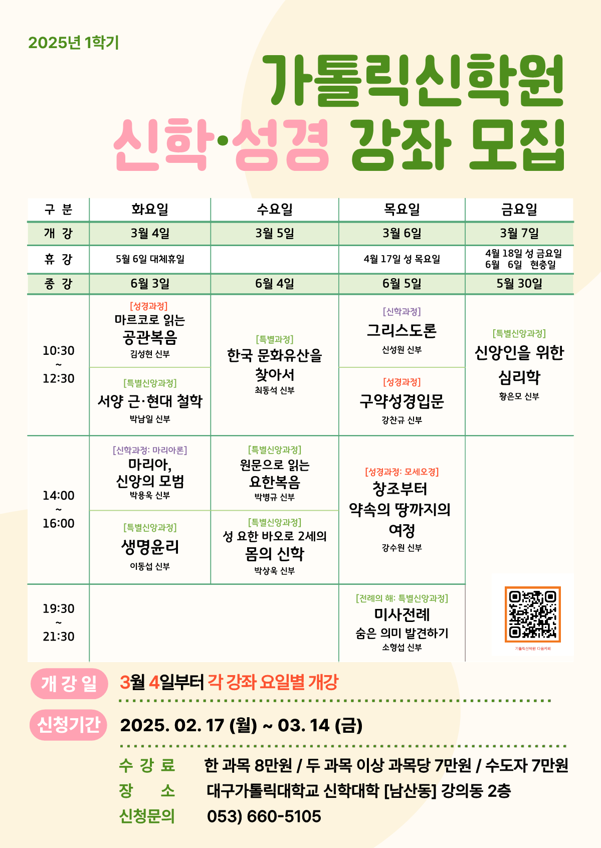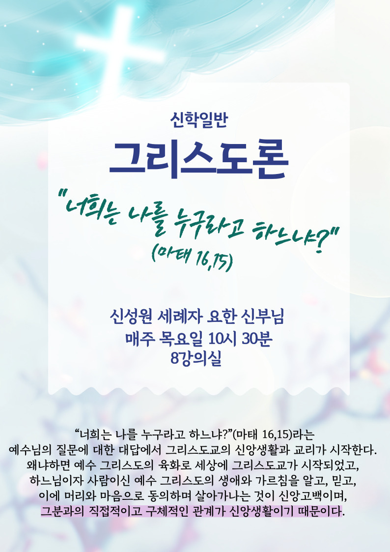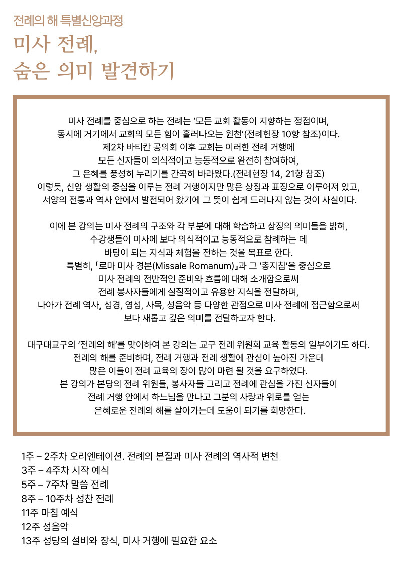 ※강의 시간은 대구대교구 사제 인사이동 및 기타 사정에 의하여 변경 될수 있습니다.
