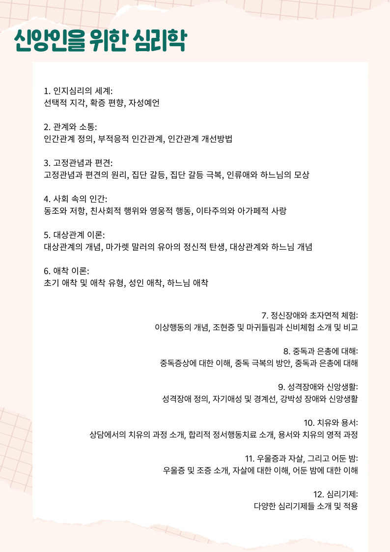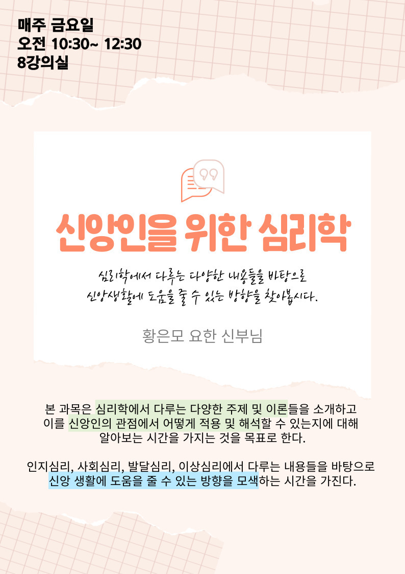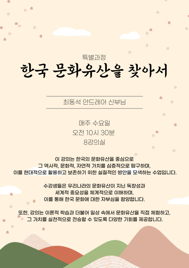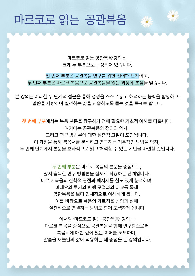 ※강의 시간은 대구대교구 사제 인사이동 및 기타 사정에 의하여 변경 될수 있습니다.