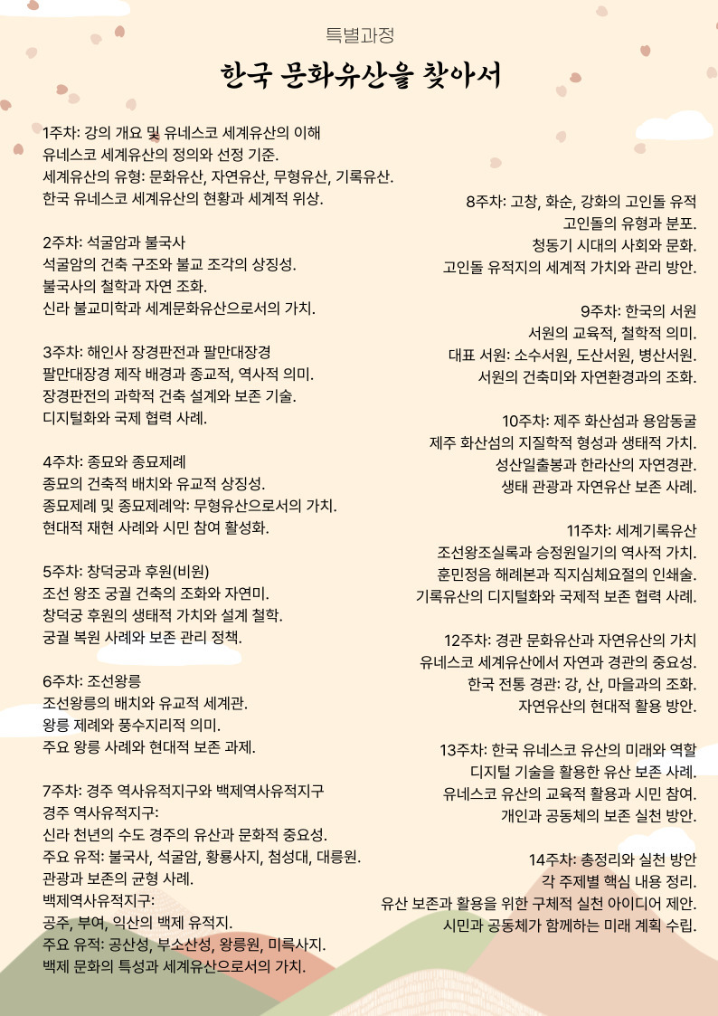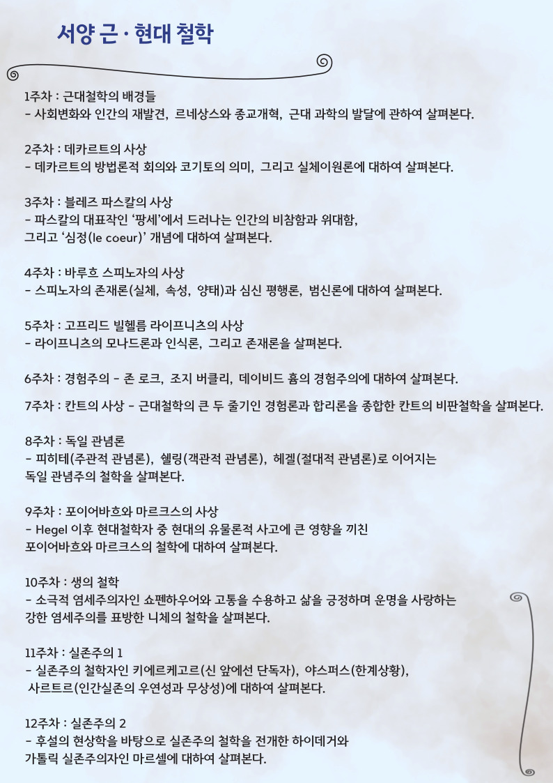 ※수강신청은 개강 후 2주동안 신청기간으로 관심 있는 강좌 청강 뒤에 충분한 결정을 내리고 하셔도 됩니다.