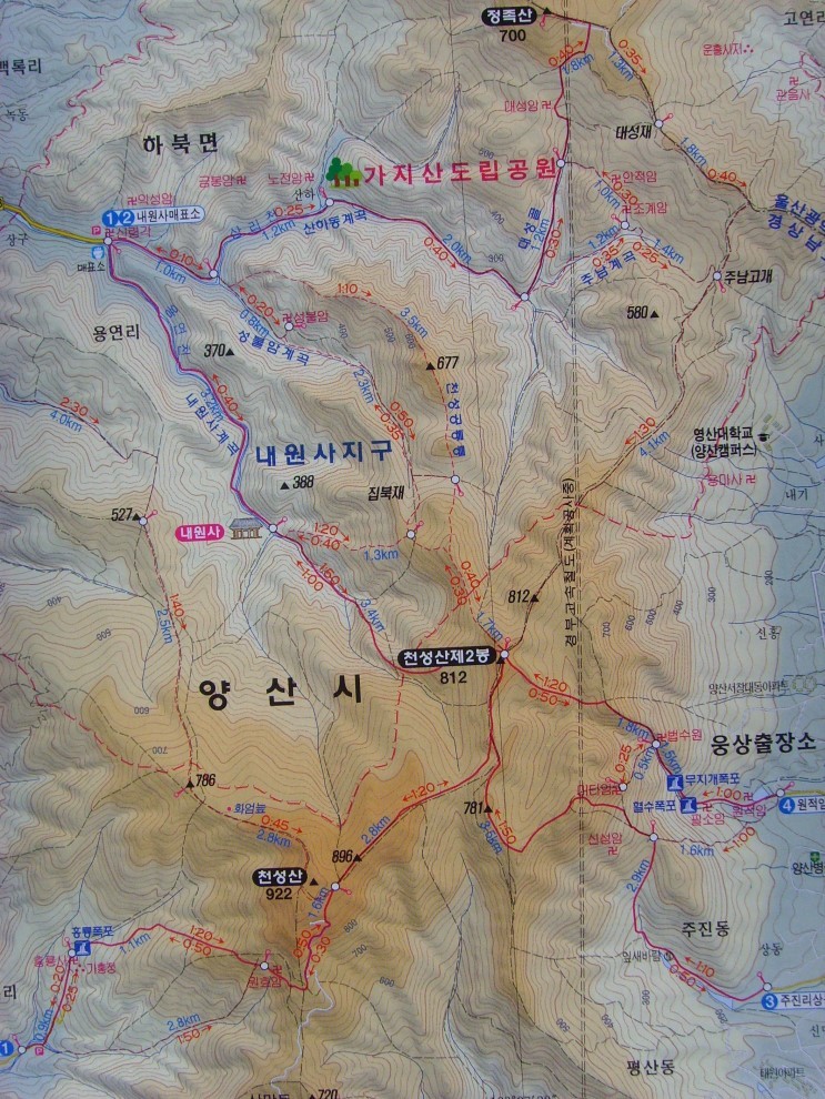 ㅇ주차장-내원사-천성산정상-법수원-백동(12km, 4:30 소요)