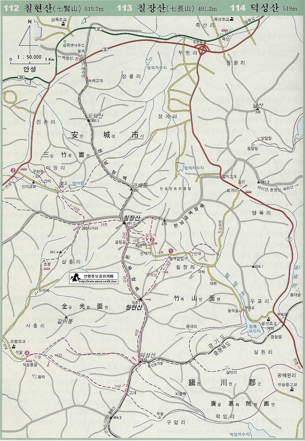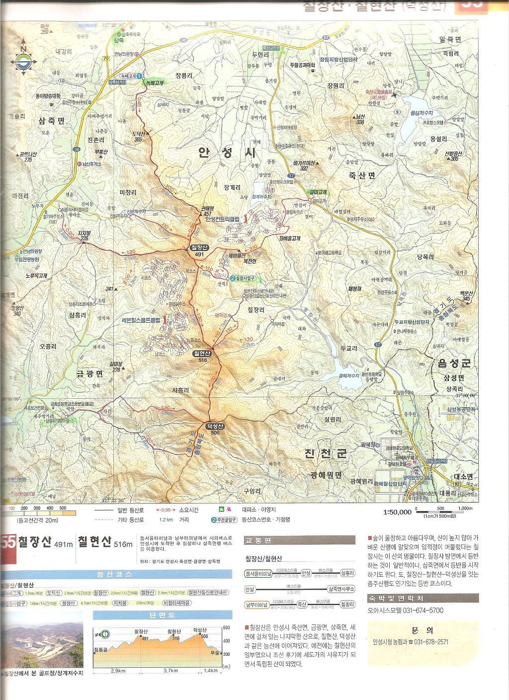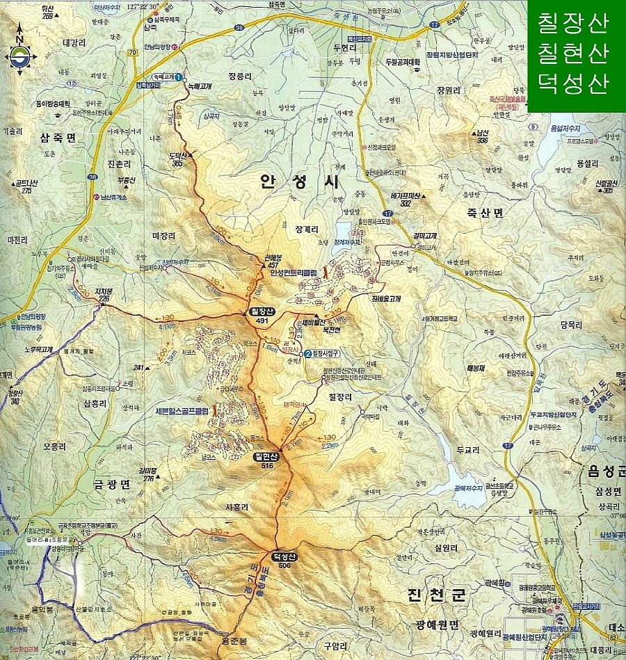 칠장산(491m), 칠현산(517m) 등산지도