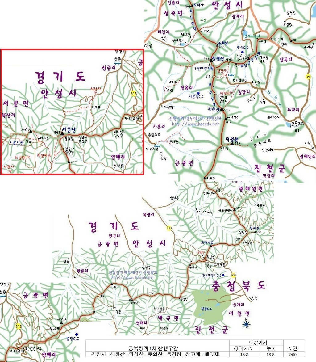 산행코스:칠장사-3정맥분기점-칠장산-도덕산-녹배고개-38번국도-