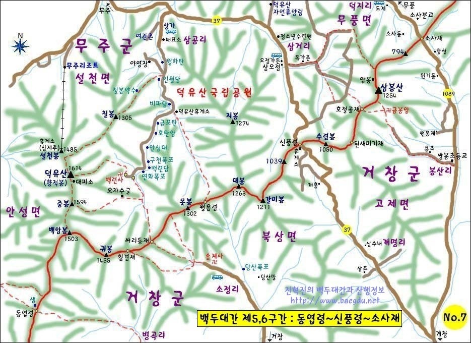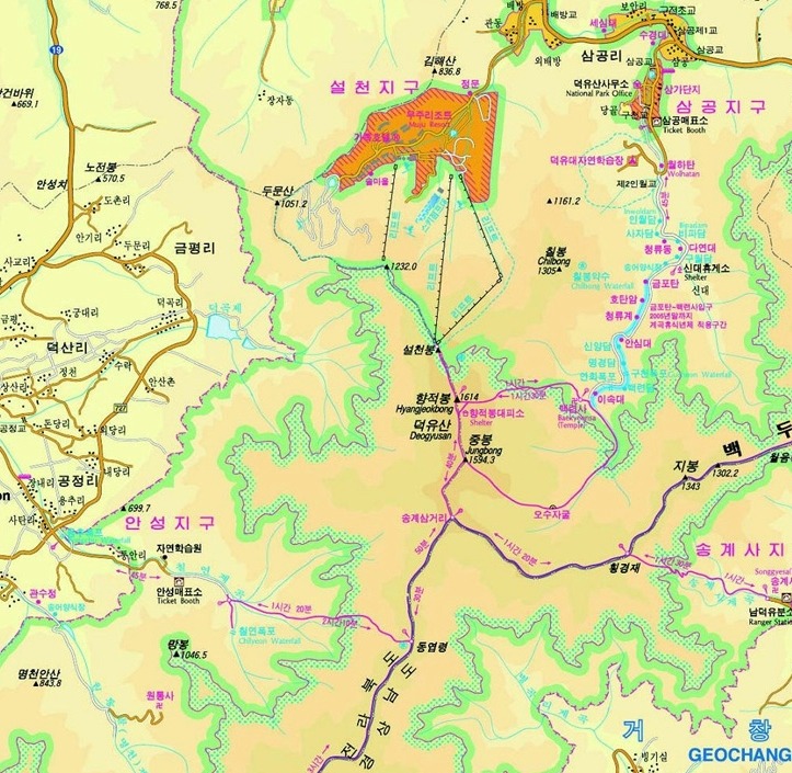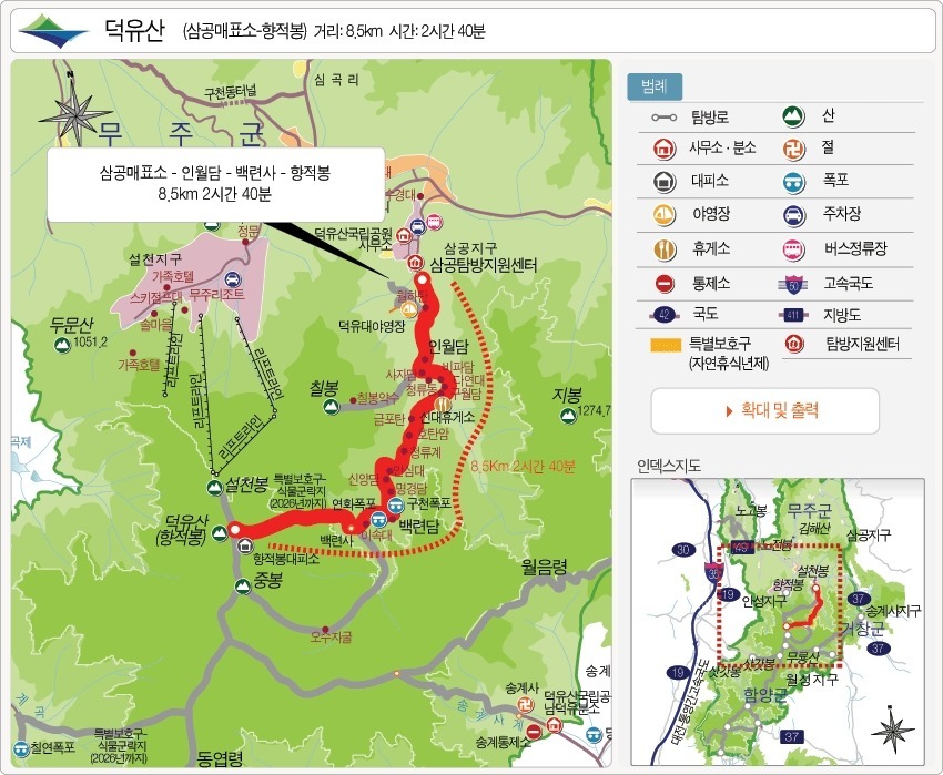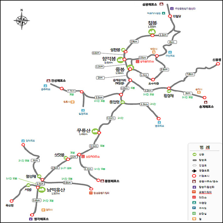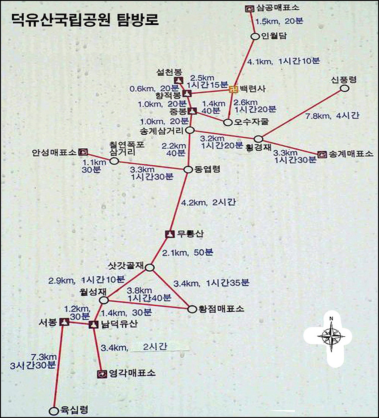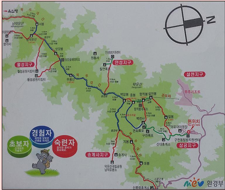 안성탐방지원센터-송계삼거리-중봉-향적봉-백련사-구천동-삼공리
