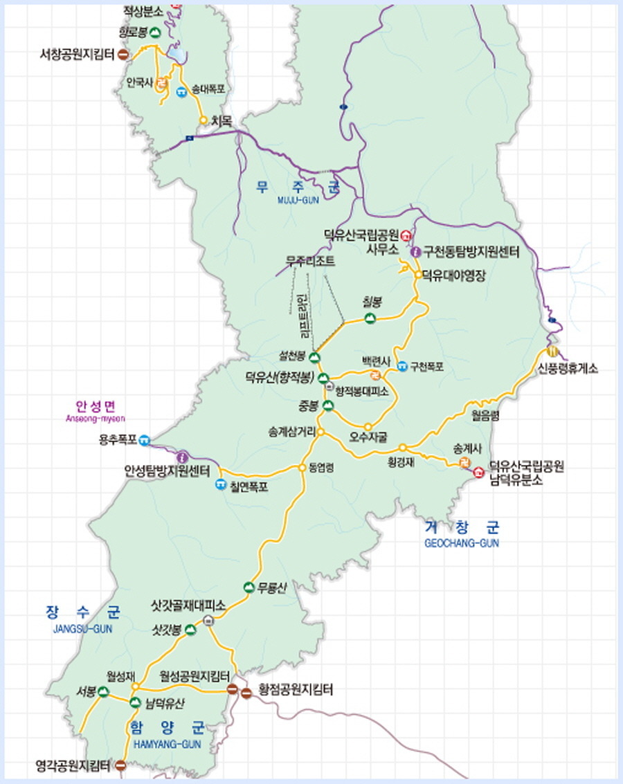 무주군을 중심으로 한 이 일대를 1975년 2월에 덕유산국립공원으로 지정했다.
