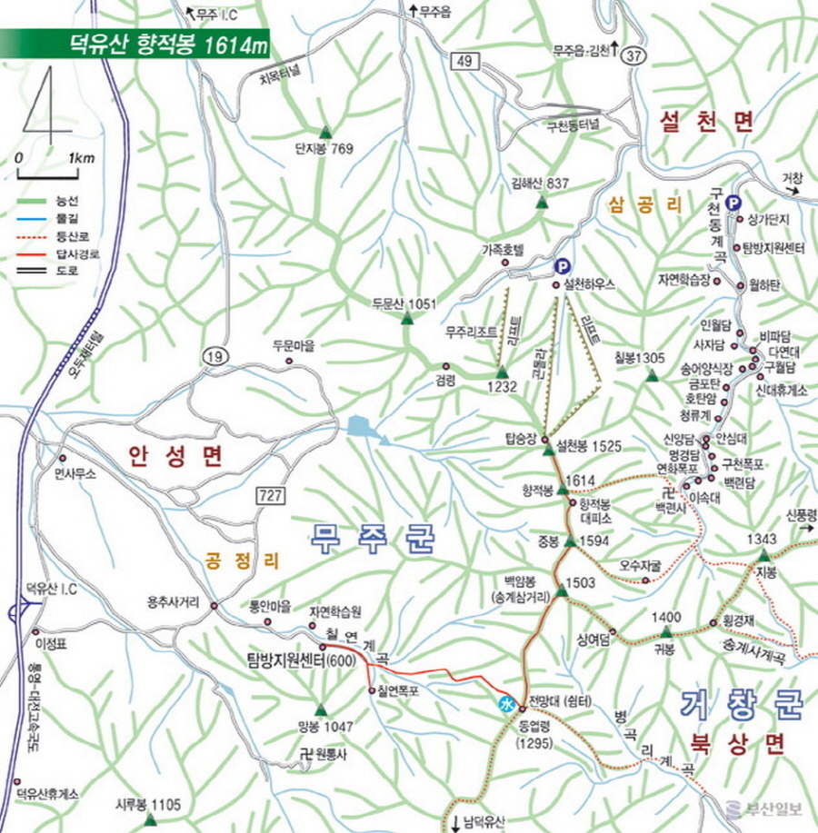 안성탐방지원세터-송계삼거리-중봉-향적봉-백련사 또는 무주리조트