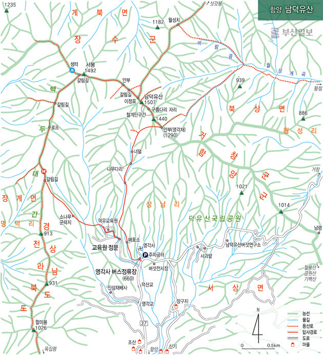 (1시간)- 남덕유정상 -(1시간30분)- 영각사-(30분)- 조산마을