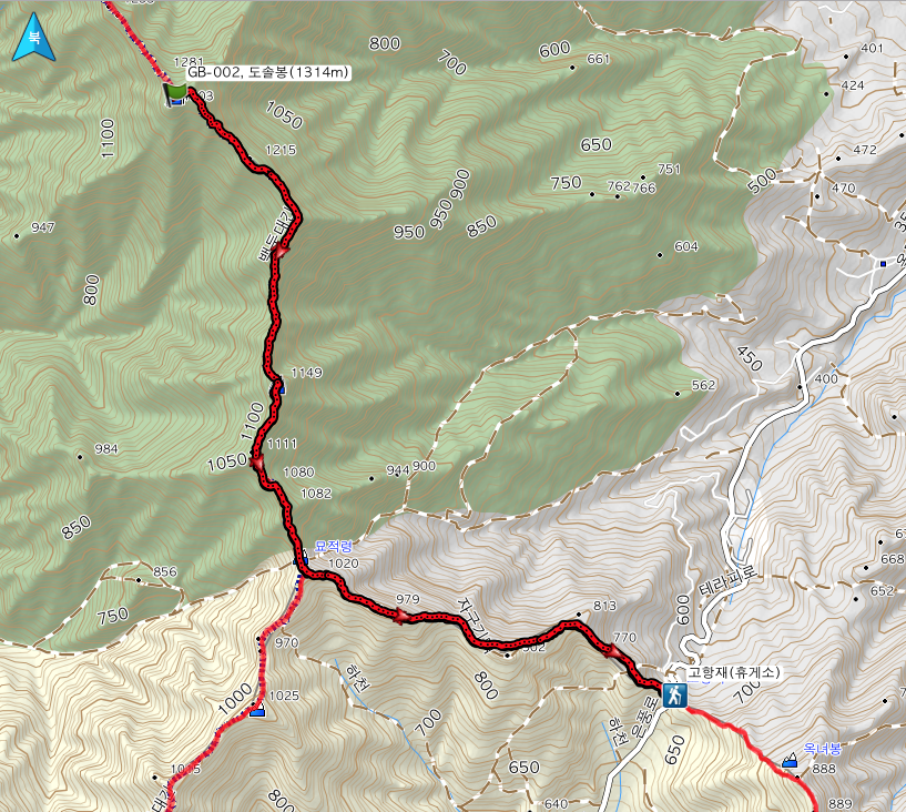 2차에는 고항재(휴게소)에서 출발하여 정상에 올라 소타운용하고 솔봉까지 왕복하였다.
