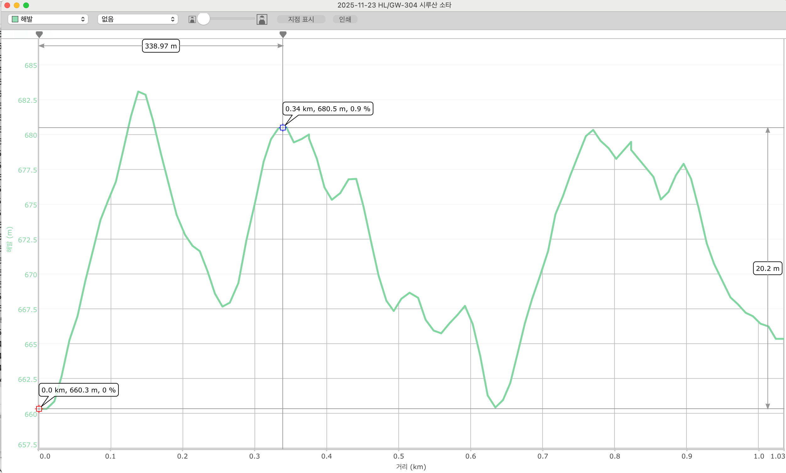 - 거리 : 약 1.0km(왕복2회)