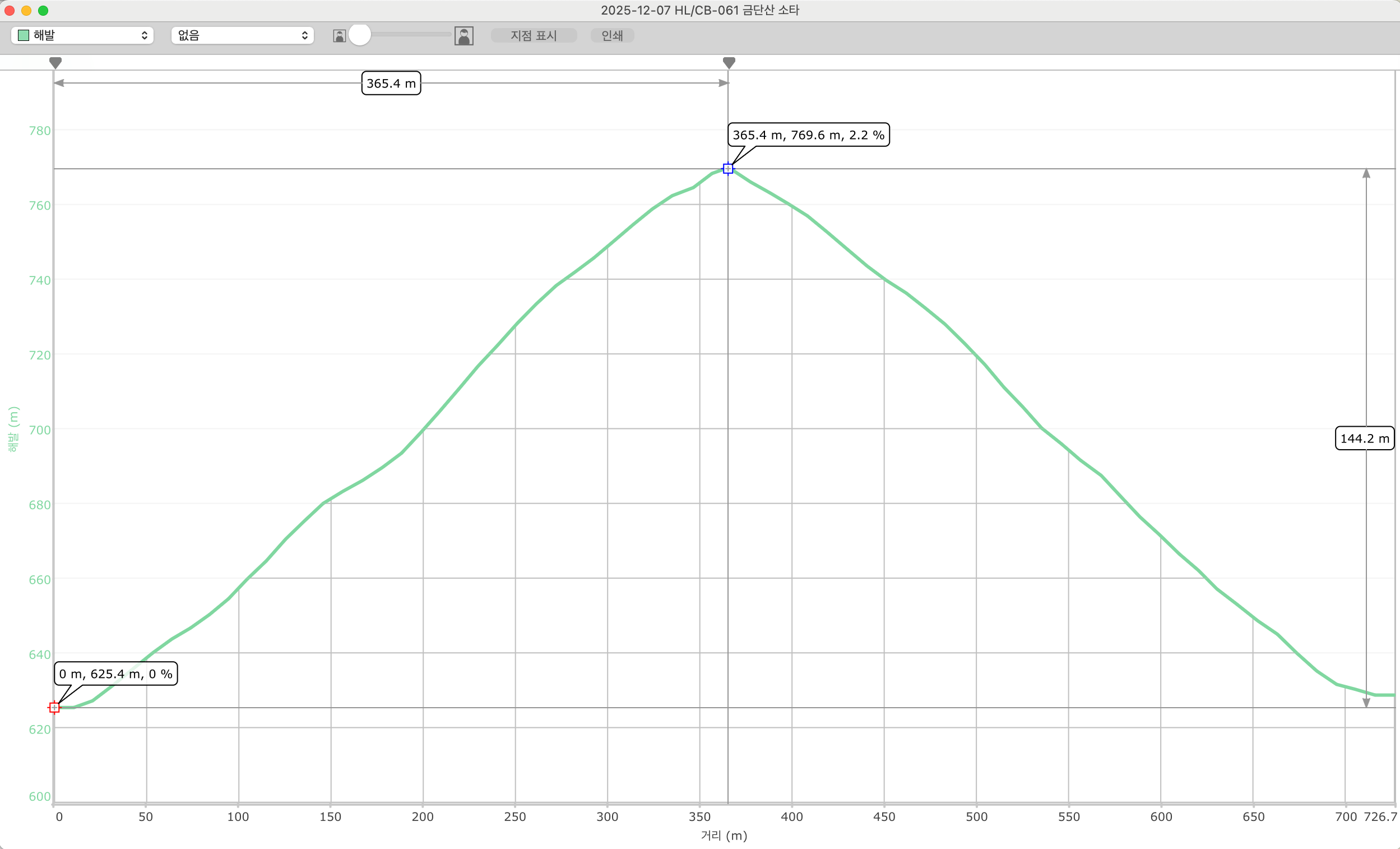 - 해발고도 : 768m( 국토지리정보원 고시 기준 )