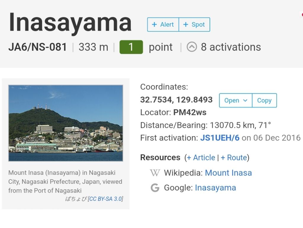 두번째 소타운용 예정지는 2월17일 오후 나가사키현 나가사키시에 있는 JA6/NS-081 이나사야마 입니다.