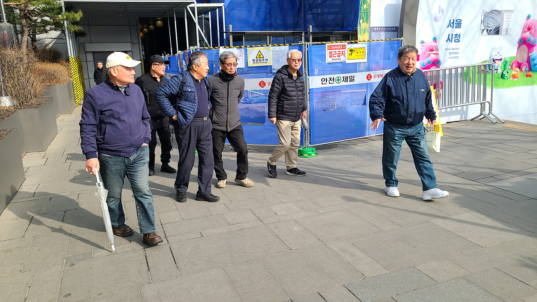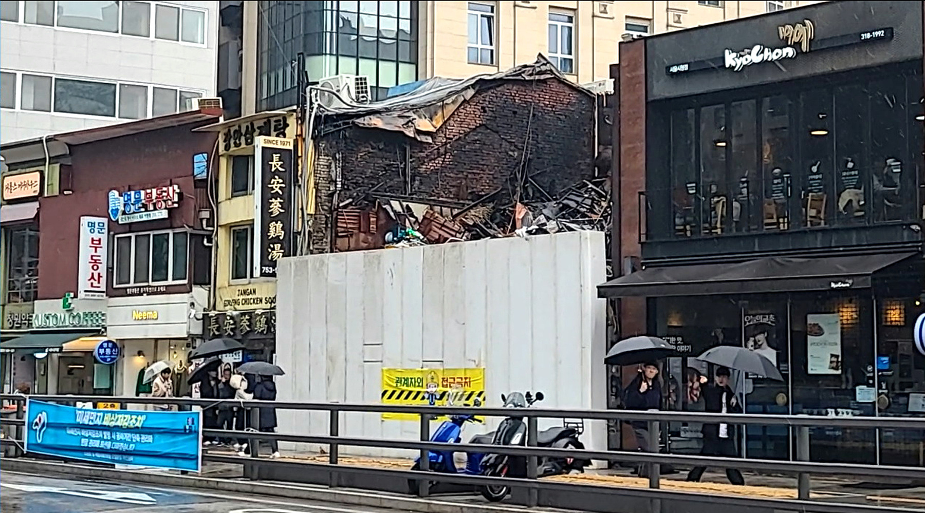 당골 "김치찌개에 돌솥밥" 집은 화재로 소실되고 가림막만이 일행들의 발걸음을 되돌리고 있군요.