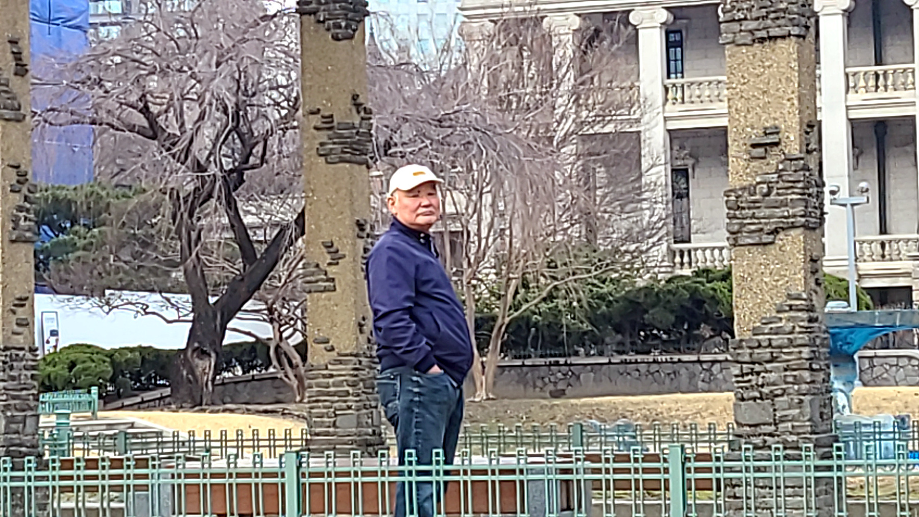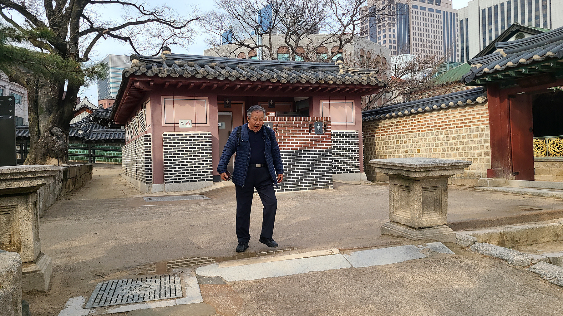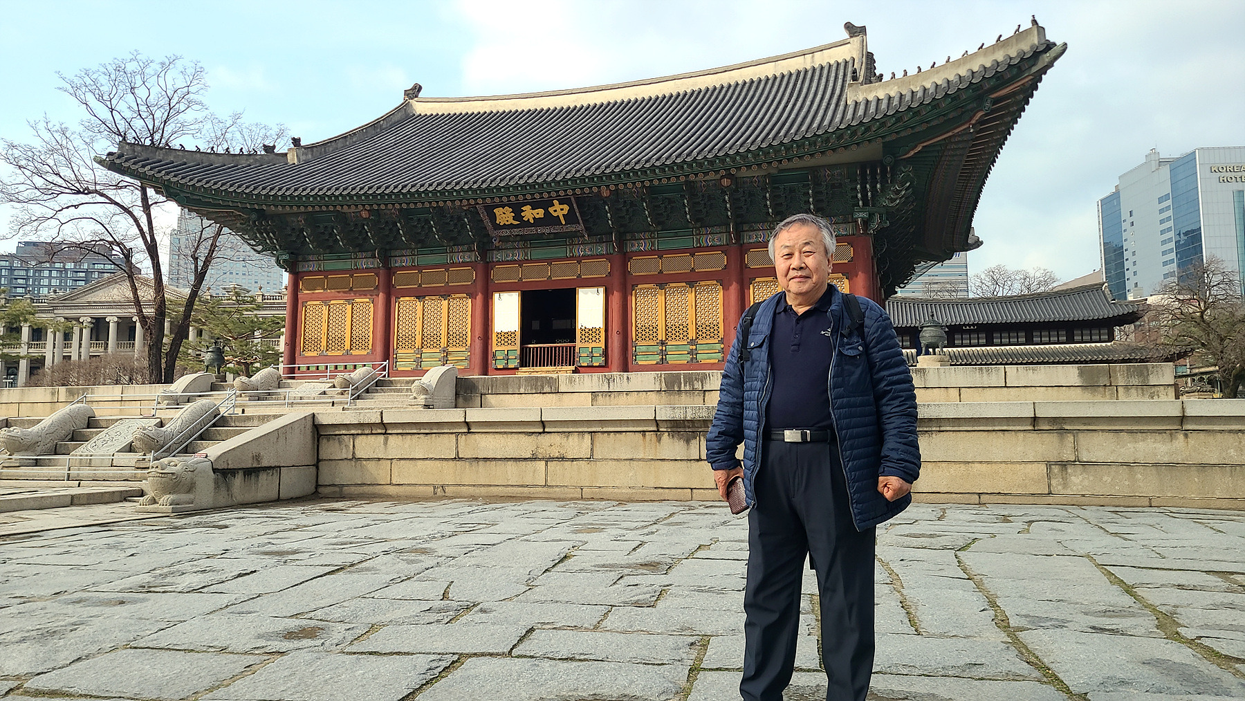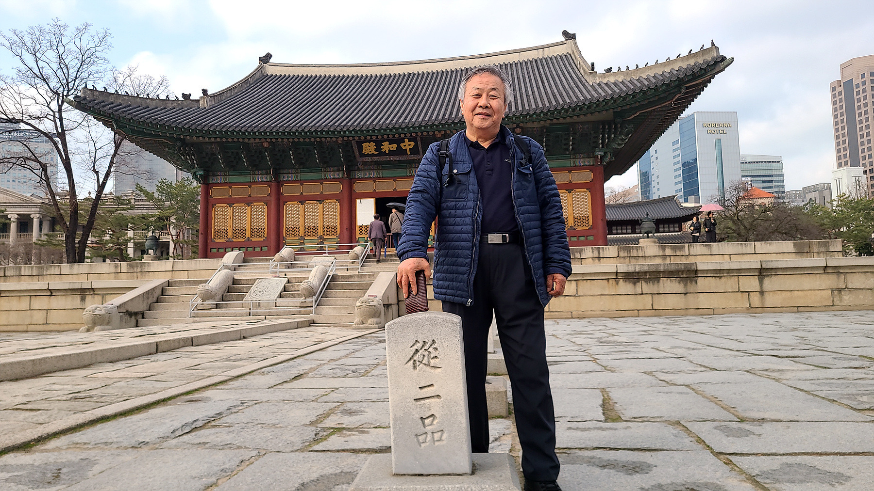 석조전 건너편 밴취에서 중화문을 배경으로 인증 샷을 남겨 봅니다.