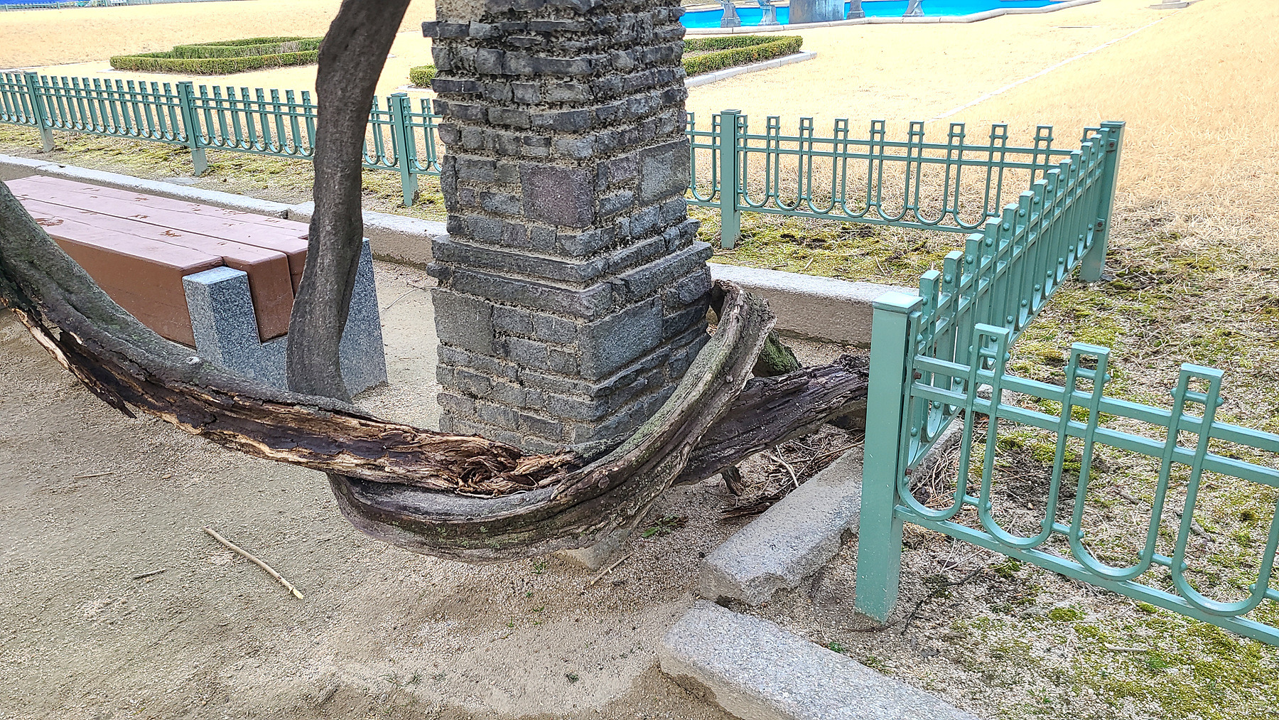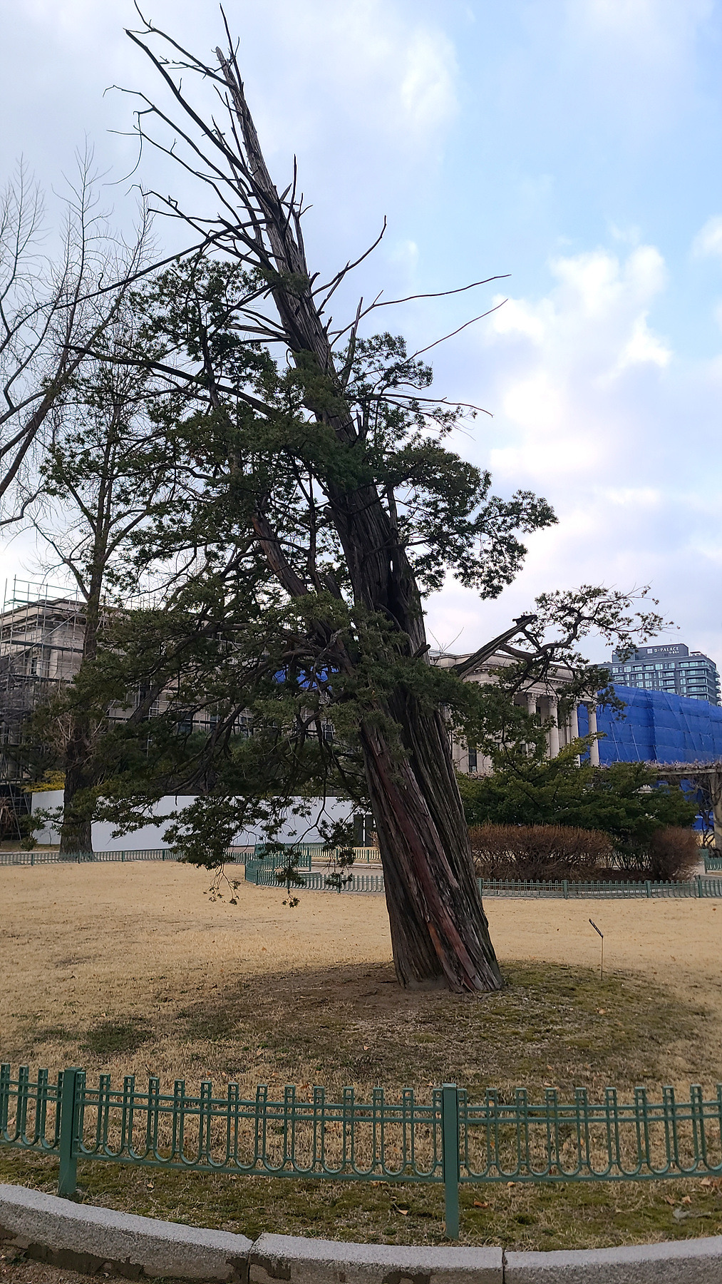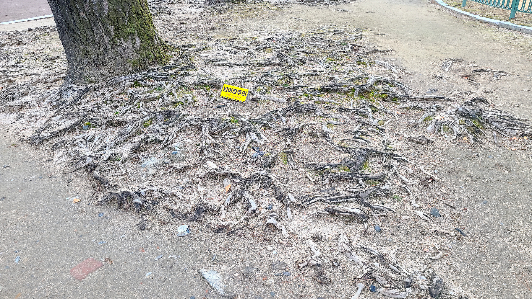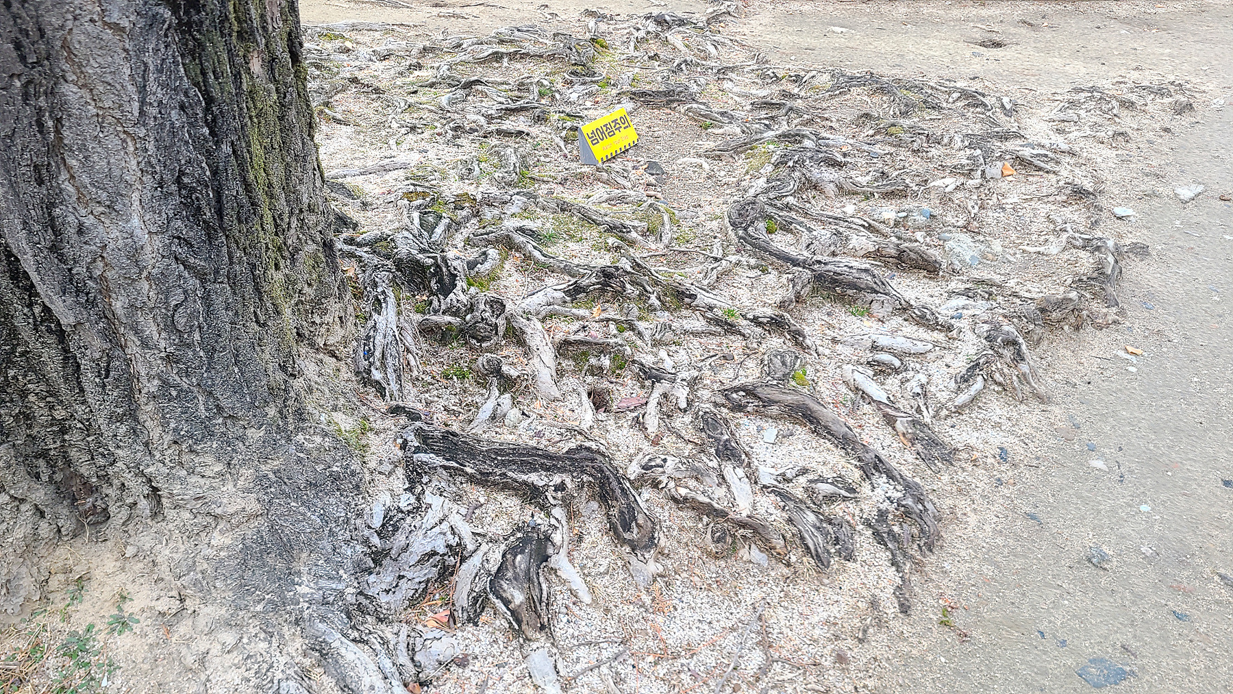 중화문 부근의 벼락 맞은 듯한 고목나무와 또 다른 나무의 얽히고 섥힌 나무 뿌리에서도