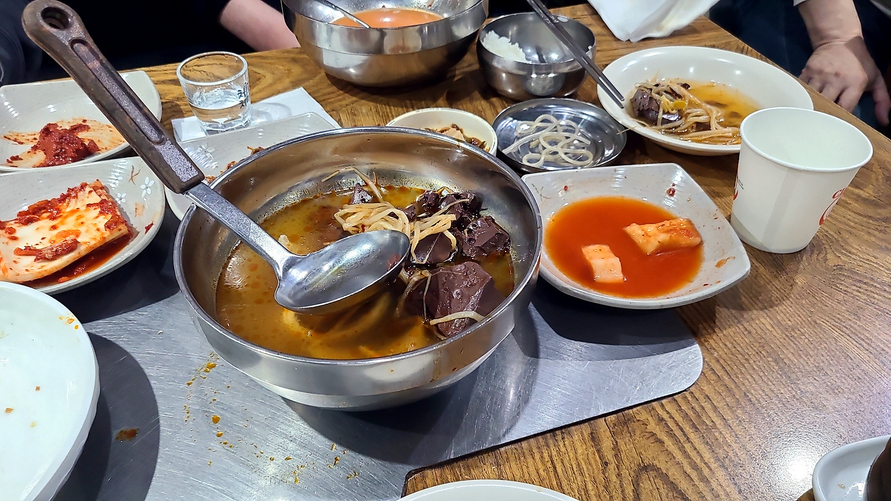 하얀 양곱탕에 추가로 주문한 얼큰한 선지국이 소주의 진미를 더욱 지극하는 시간이기도 하네요...
