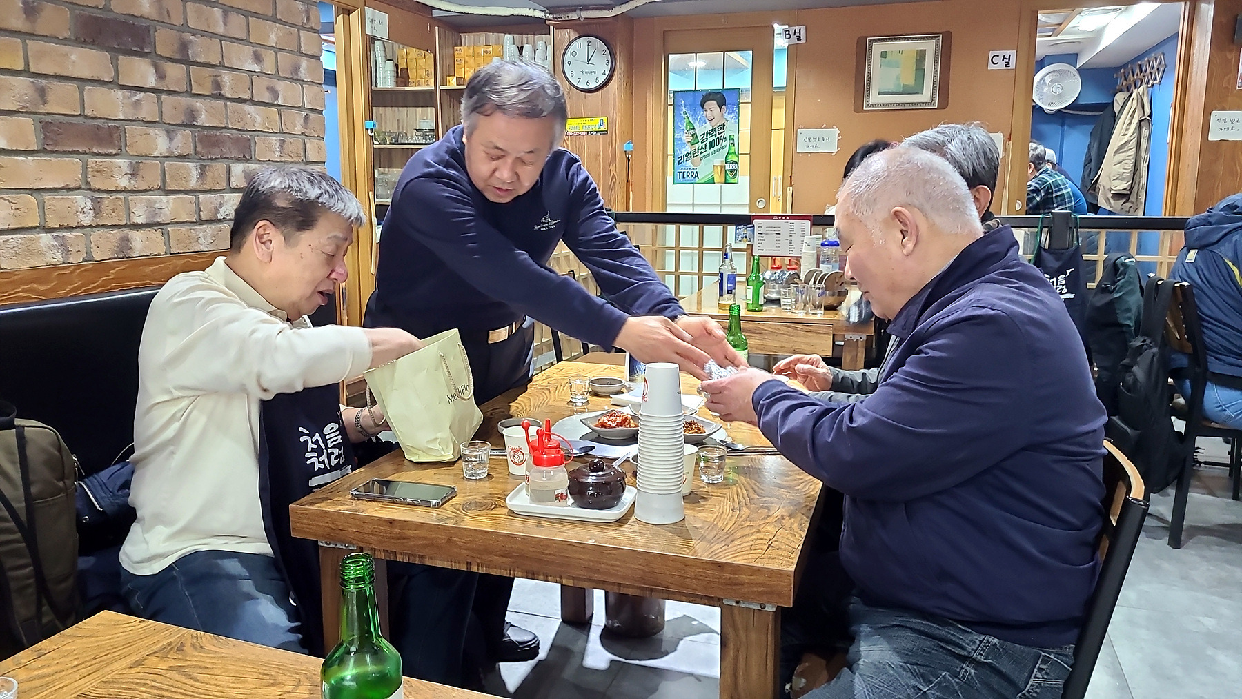 빈 소주병의 숫자는 늘어 나고 이야기 꽃은 절정을 달리는 시간... "그간 어찌들 살으셨슈??"