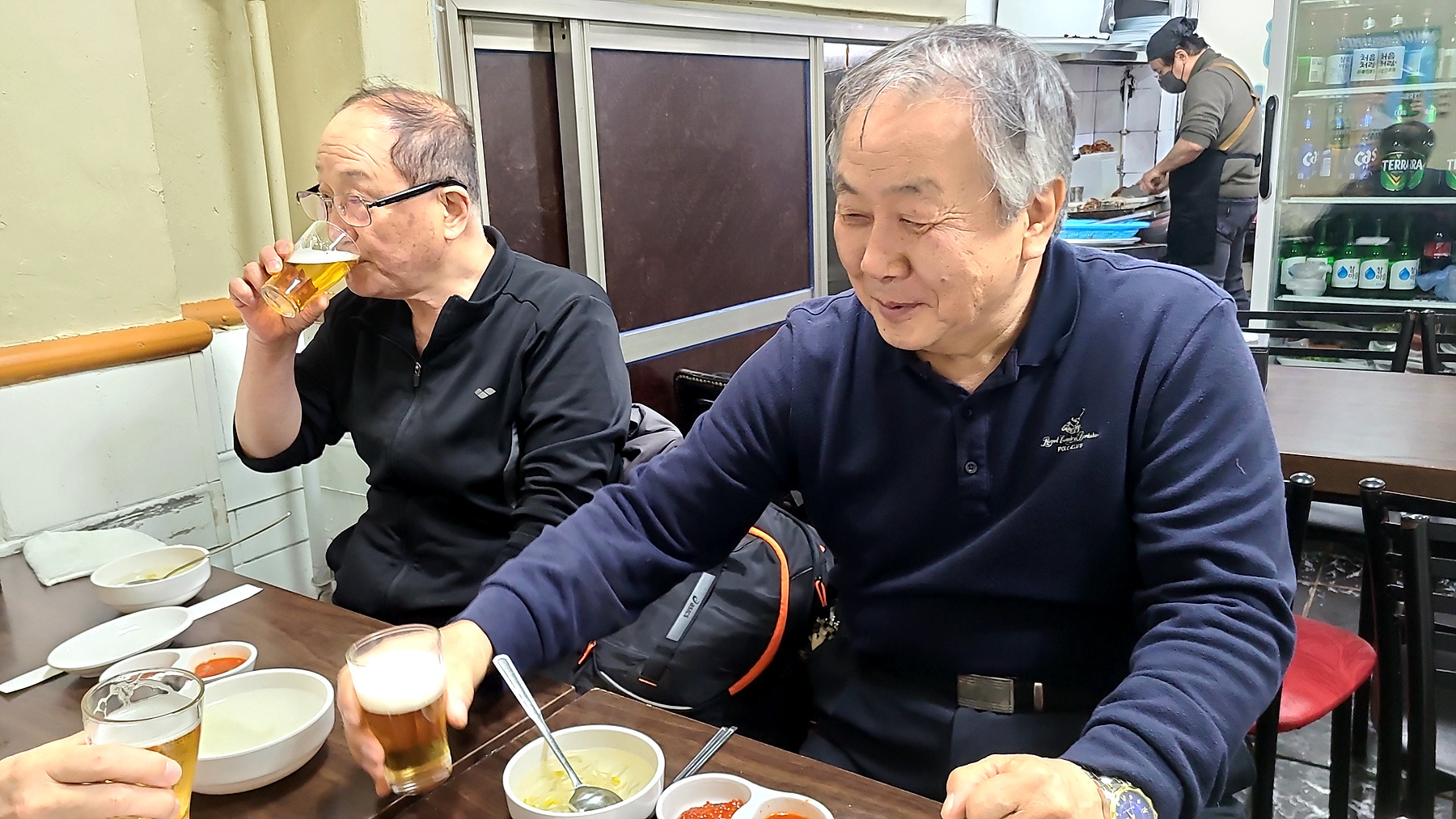 배도 채우고 알콜도 어지간히 들어 갔는가? HL3IB om과 HL2NT om의 표정이 여유 만만...