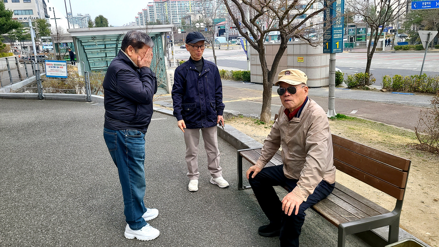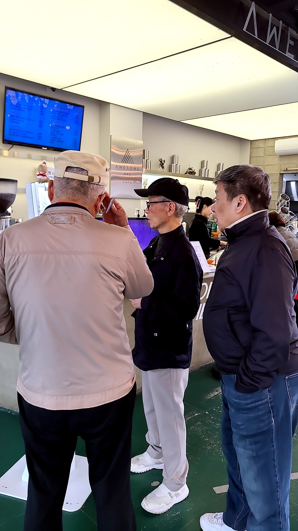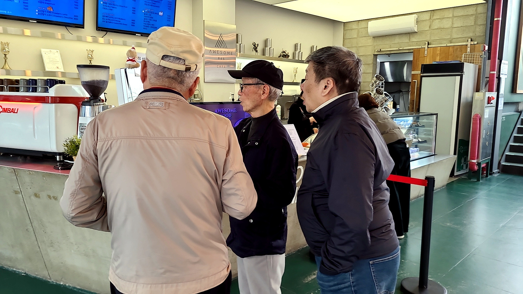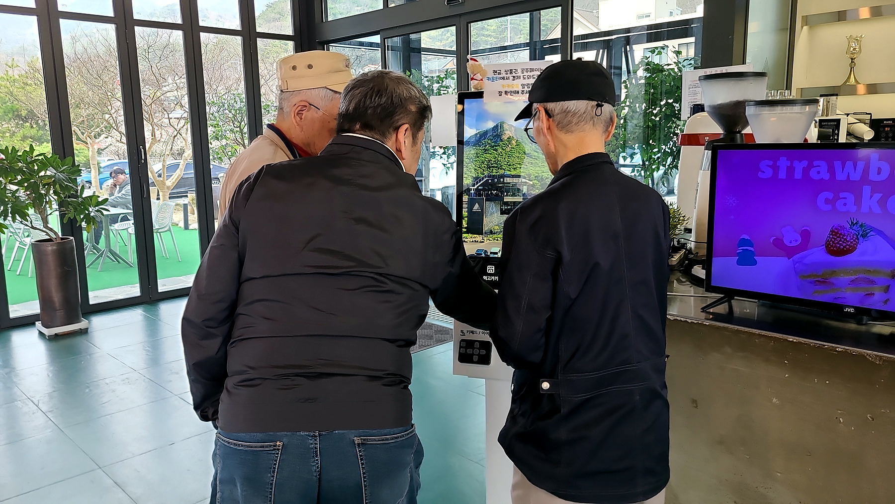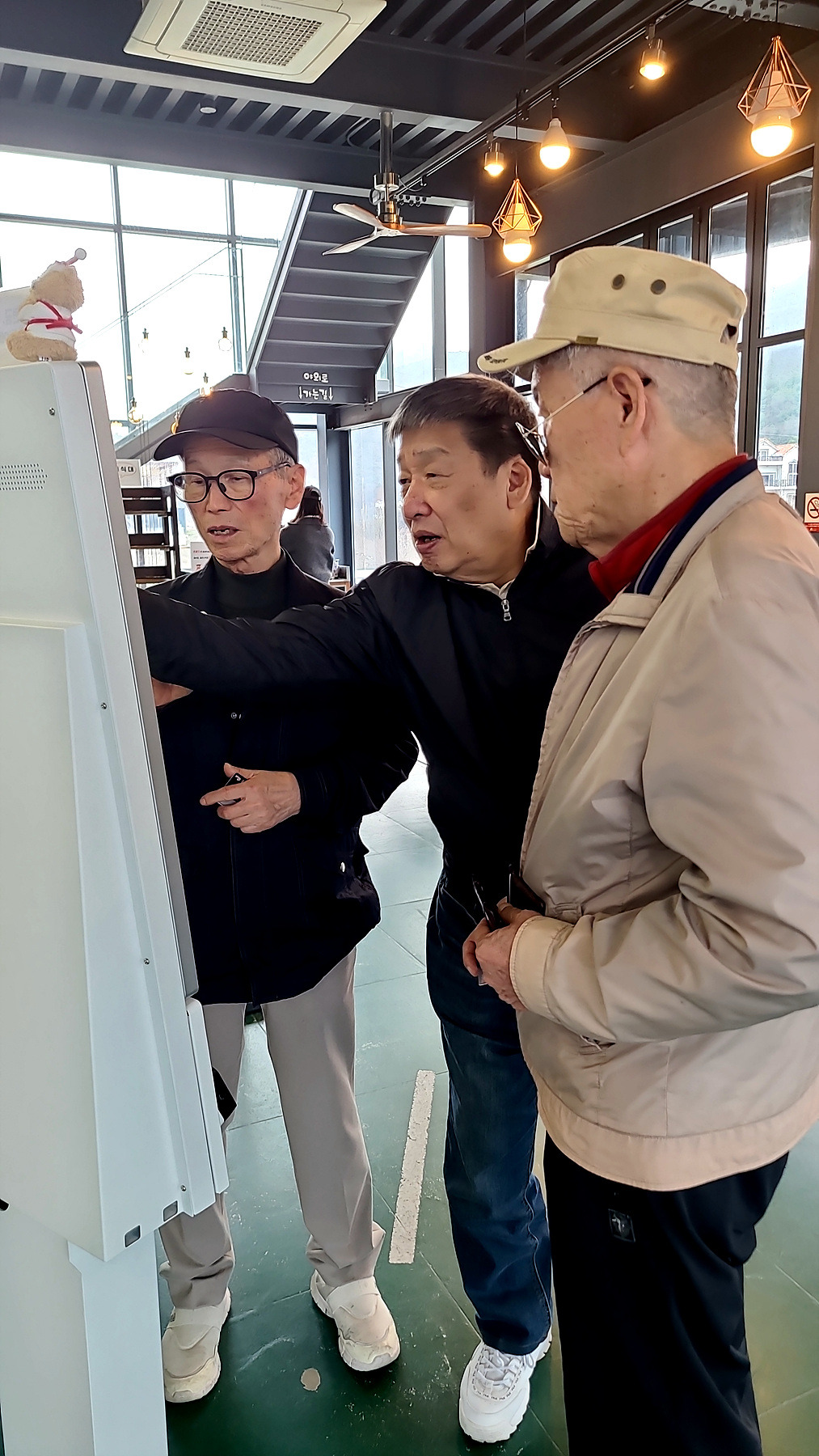 어르신들이 KIOSK 앞에서 옥신각신.. 오늘 해 전에 차 한잔 제대로 마실 수는 있을까요?? ㅋㅋㅋㅋ