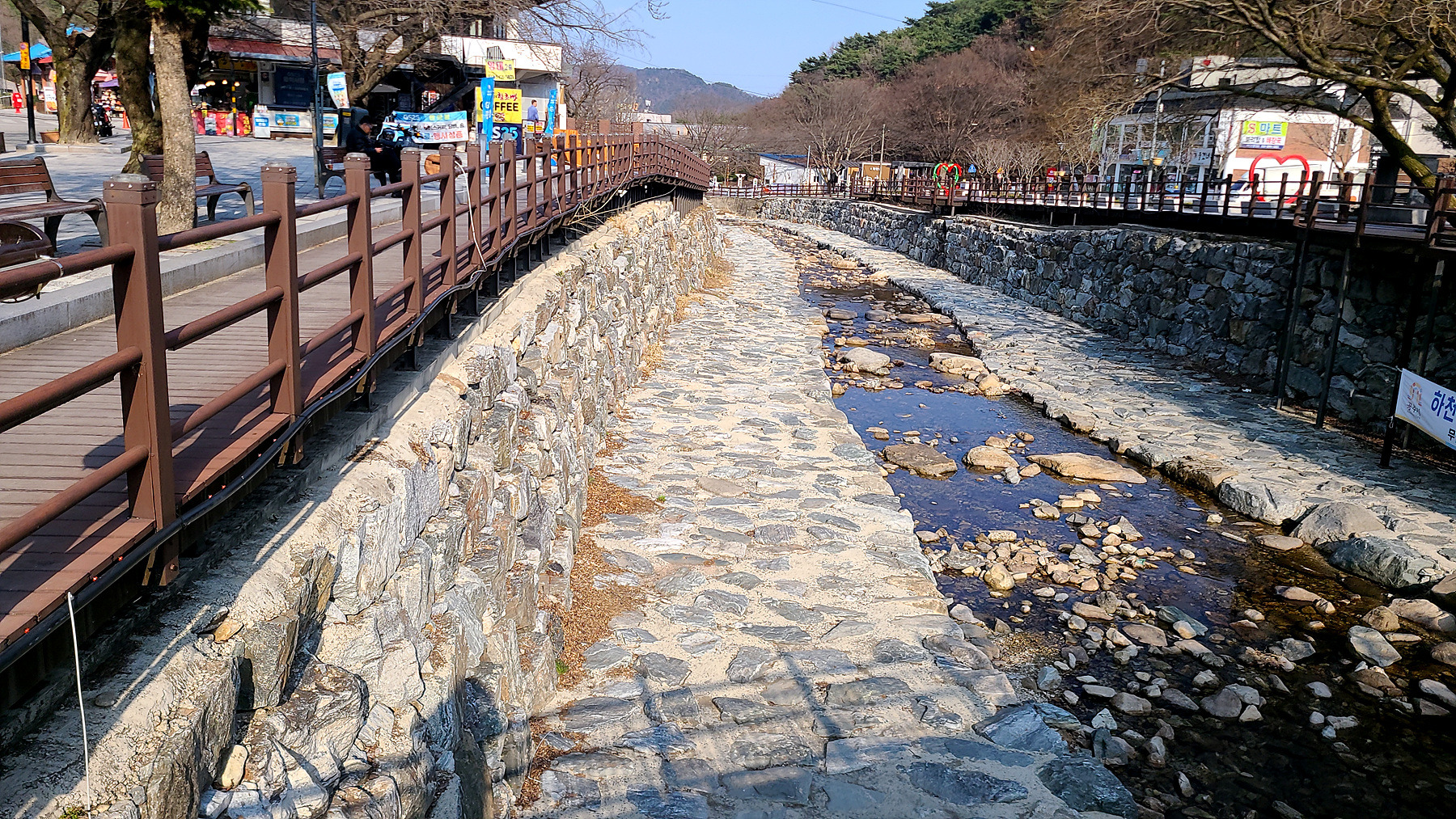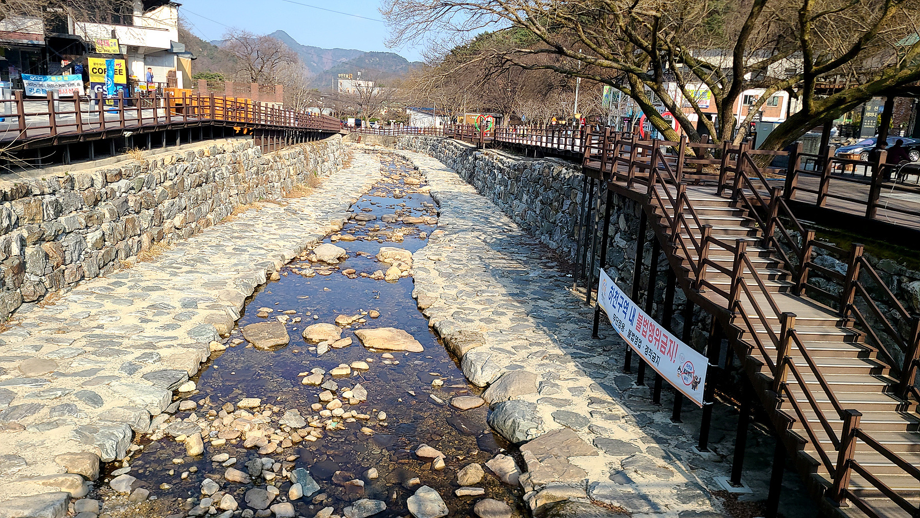 동학사 여승 알현(?)은 중도에 포기하고 오던 길로 다시 하산... 잘 정비된 개천에는 물이 말랐군요.