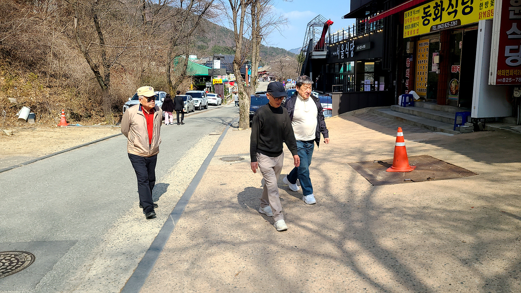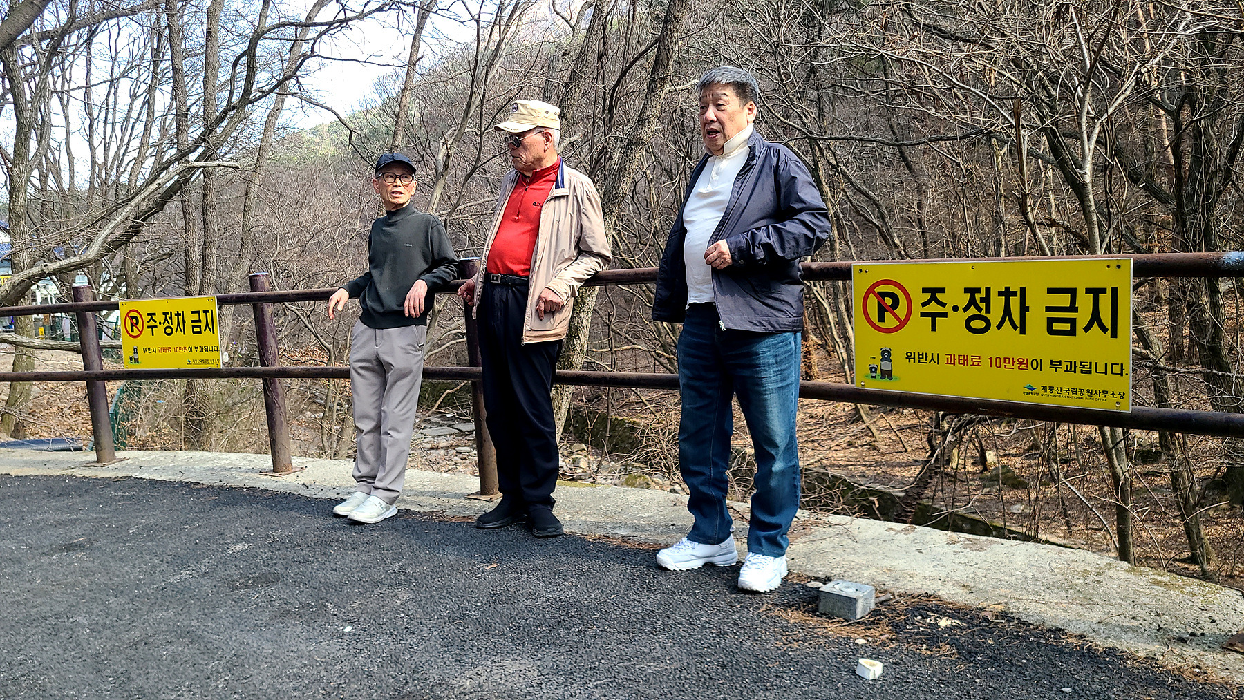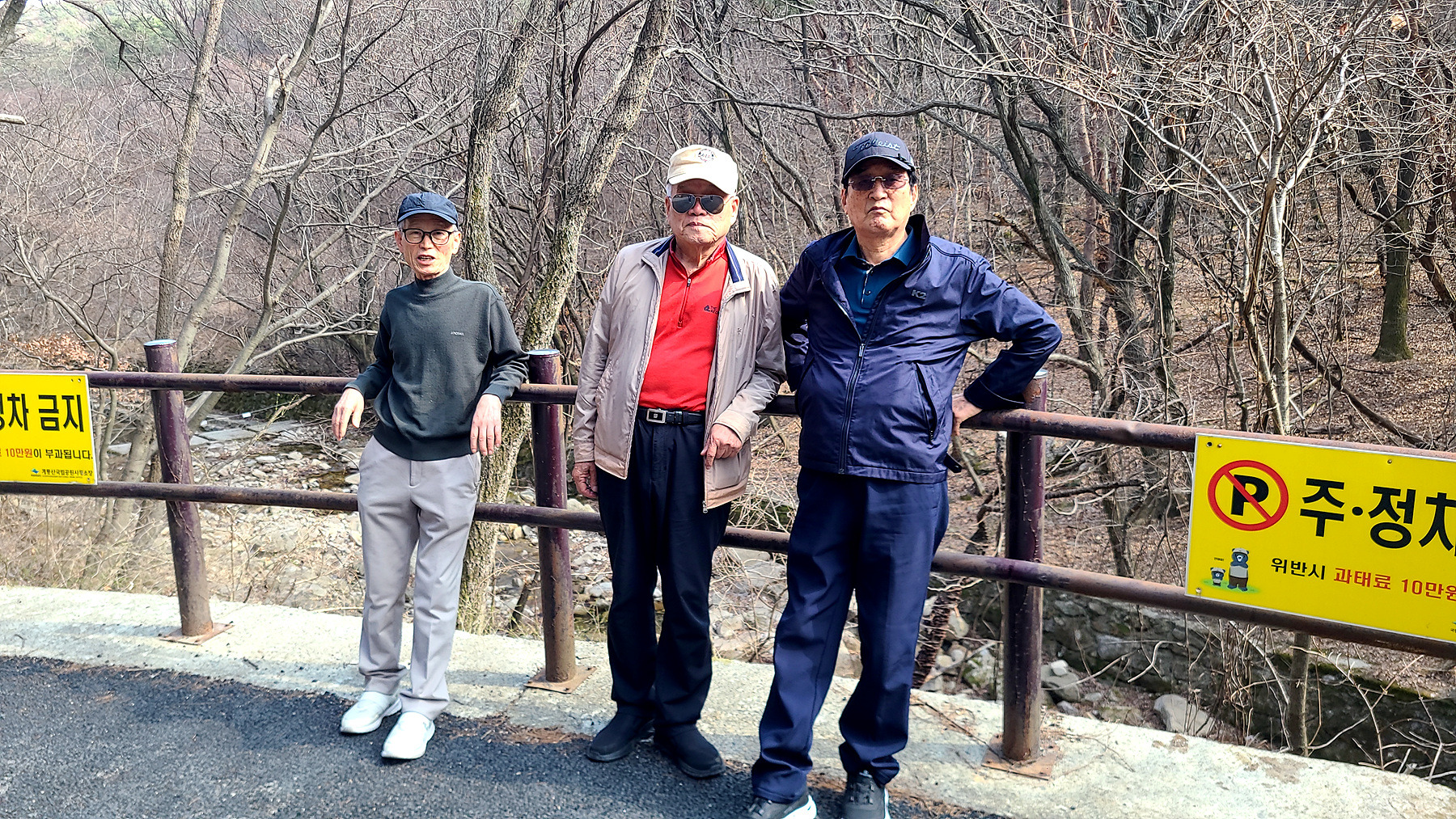 어쩔수 없는 노인네들... 동학사를 1.5km정도를 남겨두고 눌러 앉아 뭉게기로 합니다.