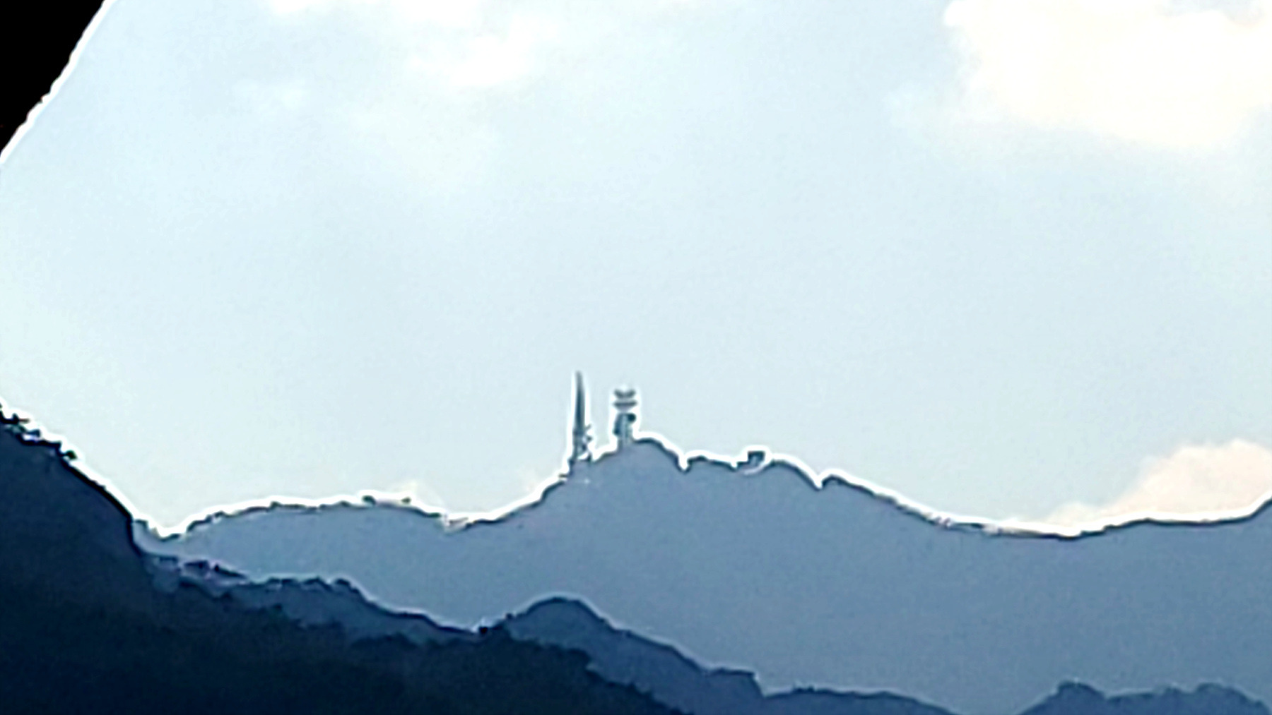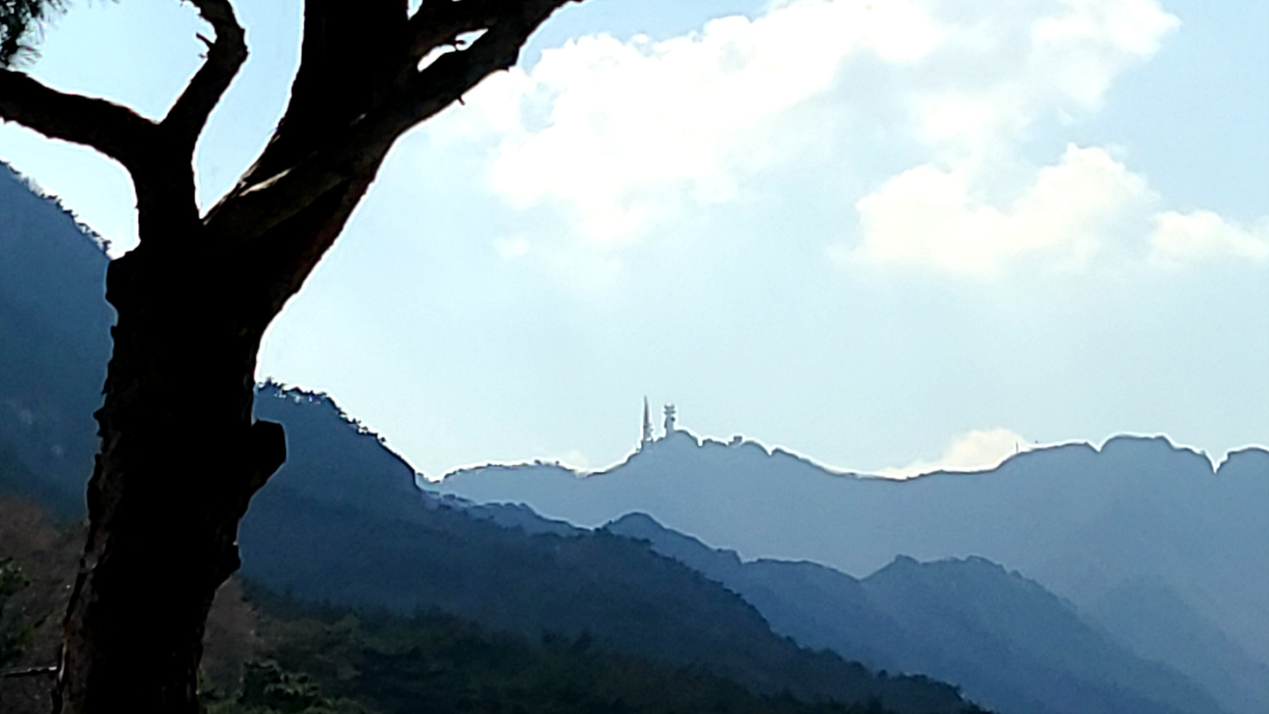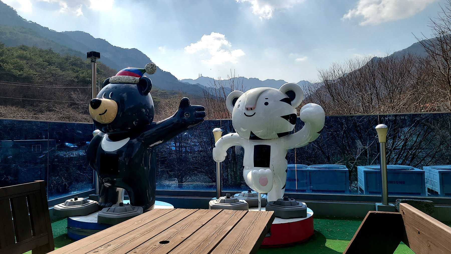곰돌이와 호돌이 인형 뒷쪽으로 멀리 계룡산 정상의 통신 중계탑이 눈에 들어 옵니다.