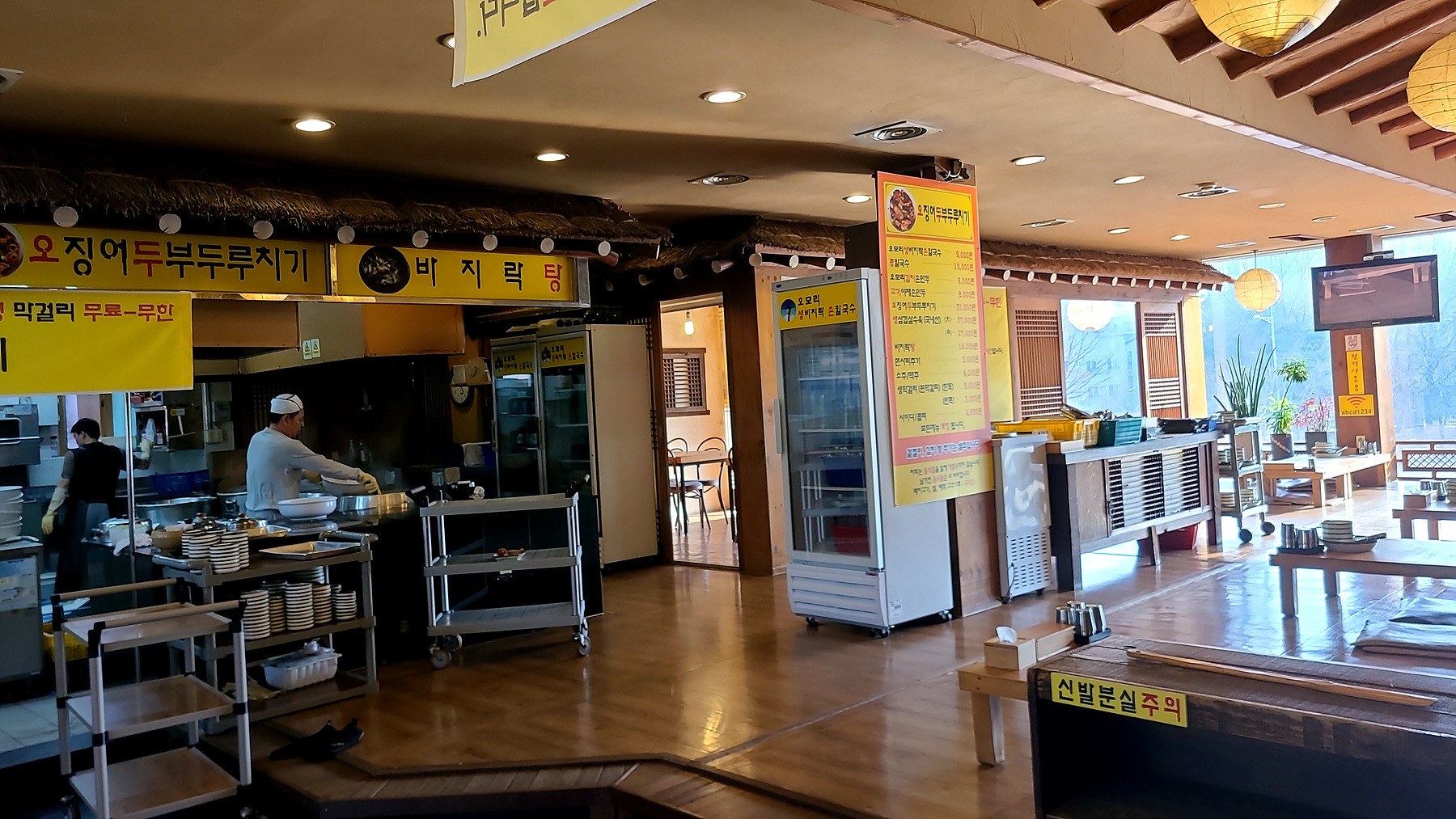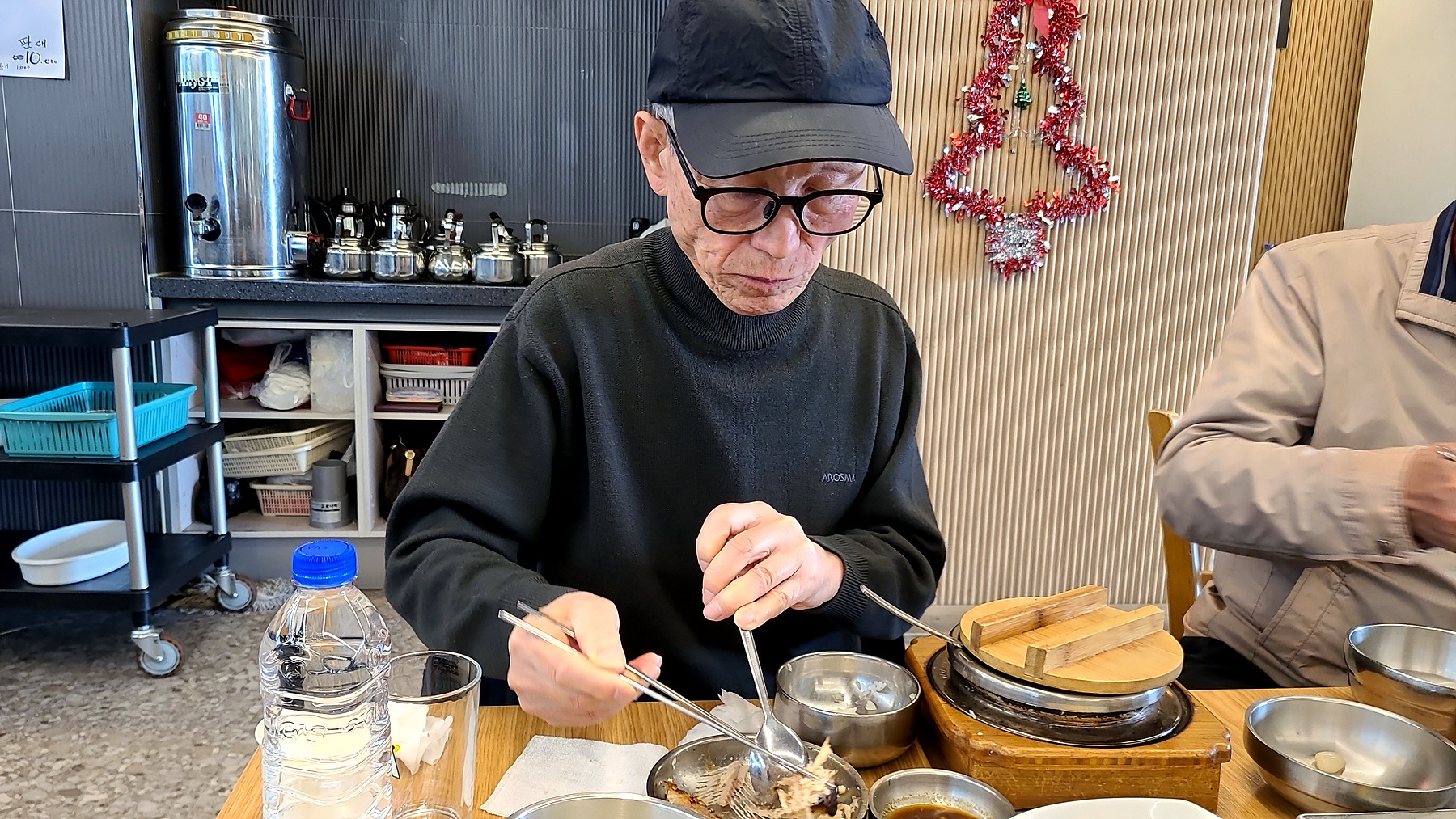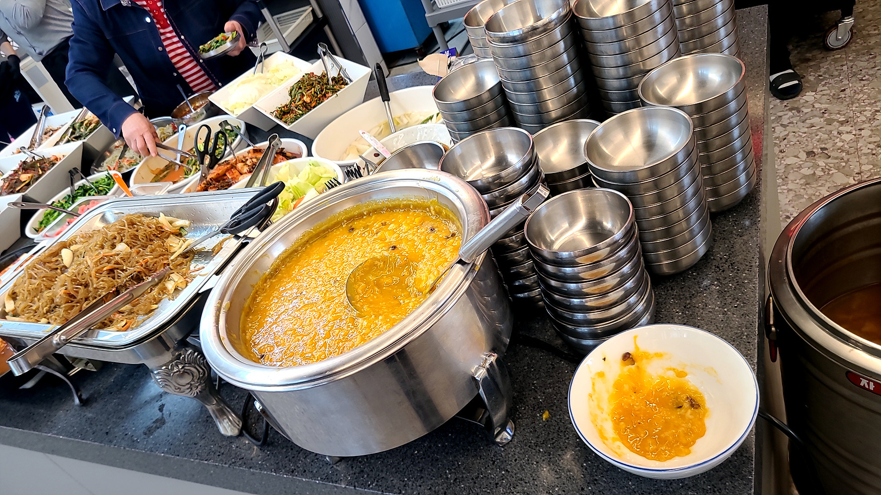 조금 이른 점심시간인데도 식탁마다 좌정한 손님들과 주 메뉴 외에 푸짐한 뷔페식 밑반찬과 부식...
