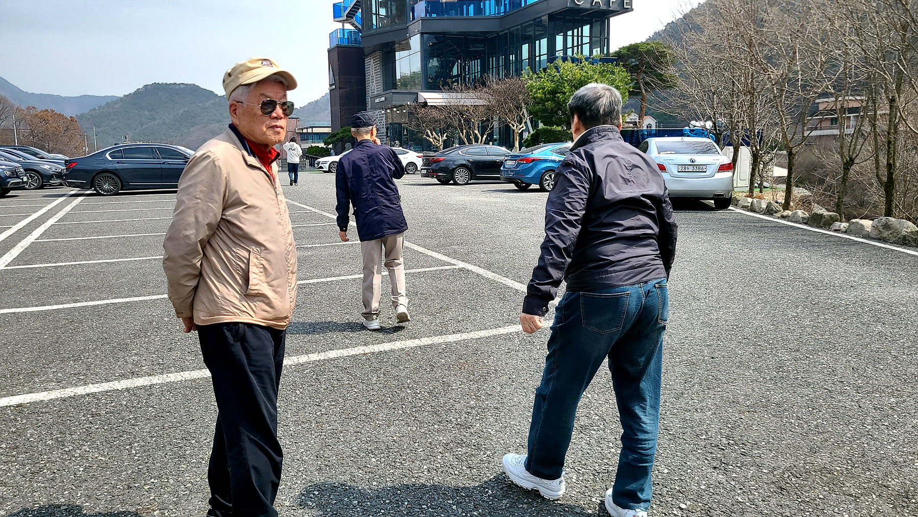 기다리고 계시던 HL3EA '좌장'님과 HL3UW 대둔산 '민도사'님과 반가운 손 인사 후 좌장님의 애마를 타고..