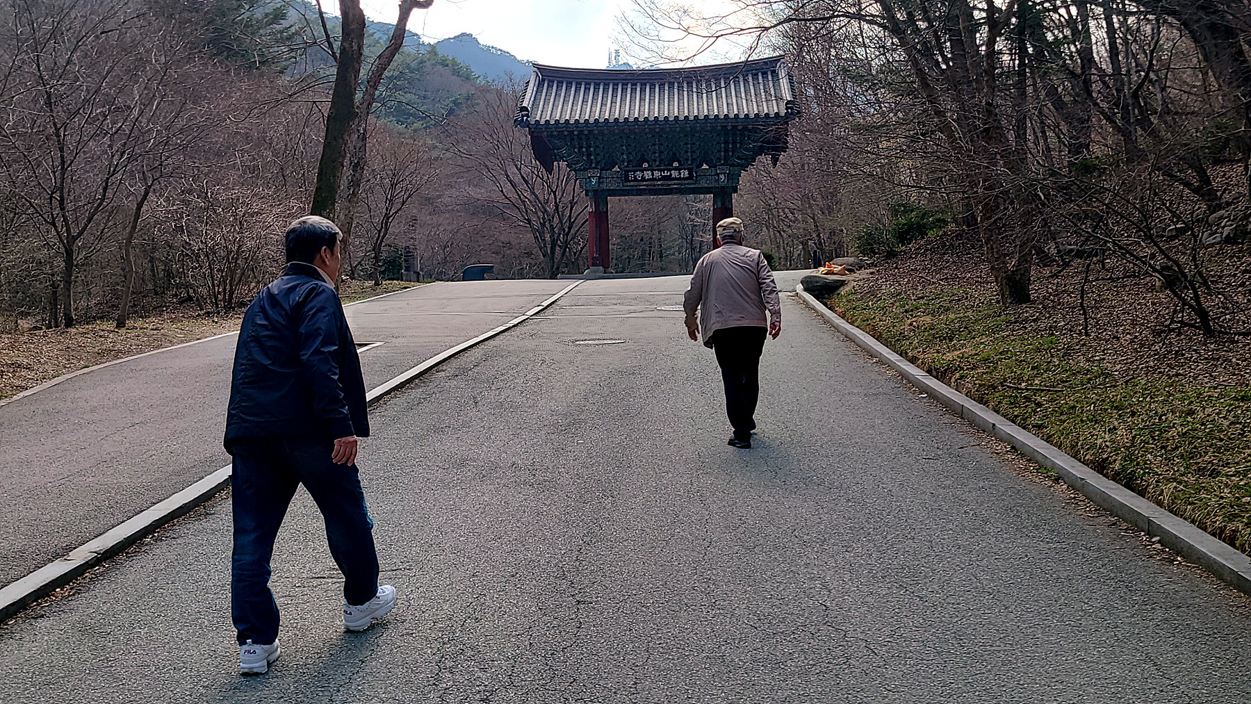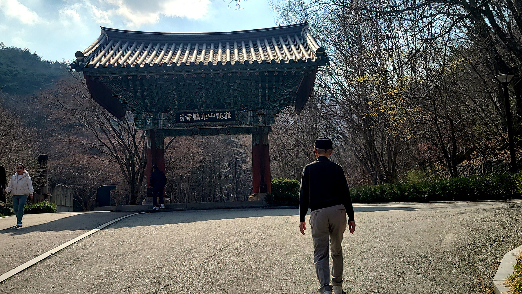 동학사 일주문을 향해 올라가는 길에 폼을 잡으시는 좌장님의 모습이 ...
