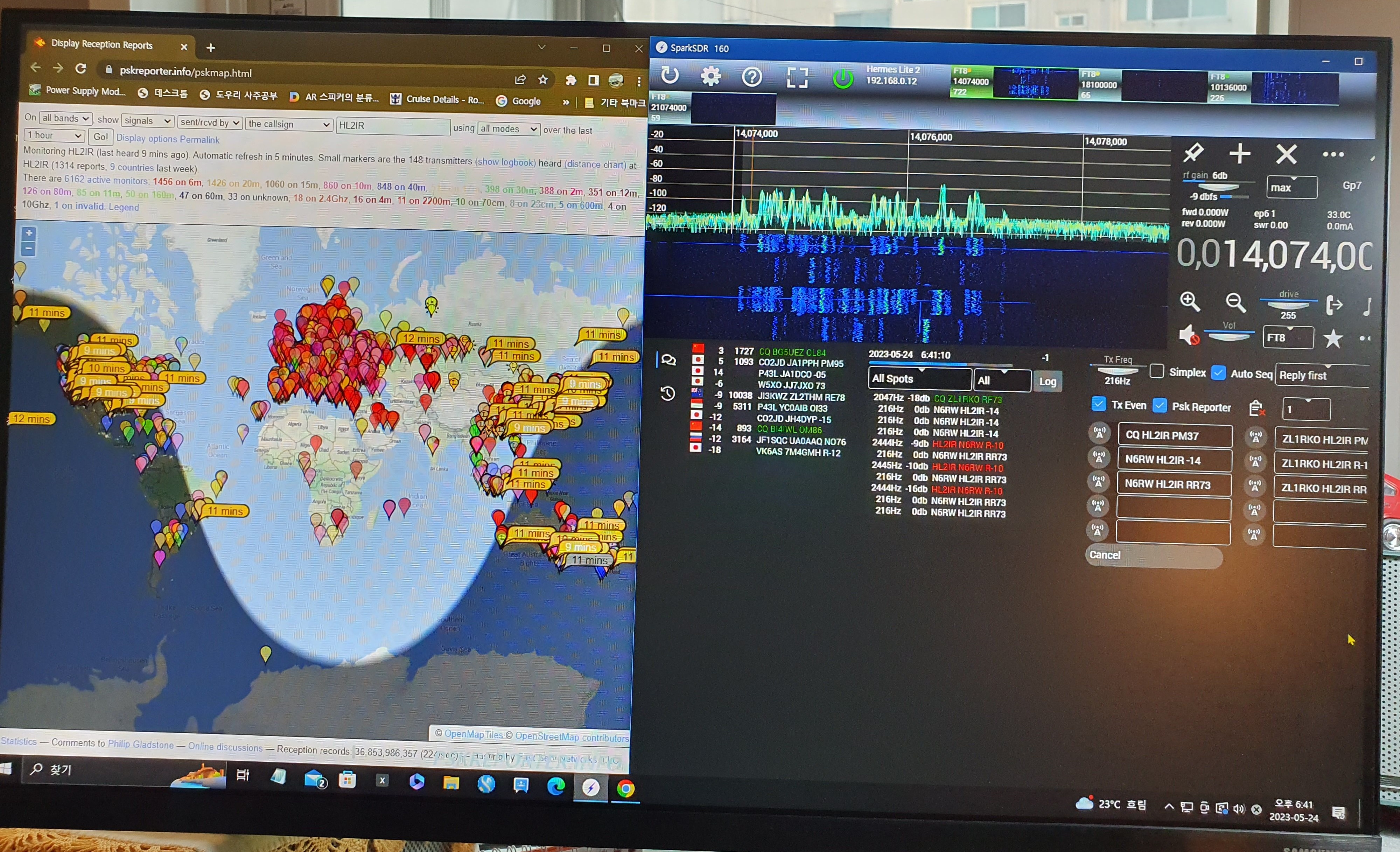 본다든지 PSK Reporter 세계지도를 보면서 현제 송신하는 전파가 세계 전역에서 잘 수신되는지 확인하는 정보를