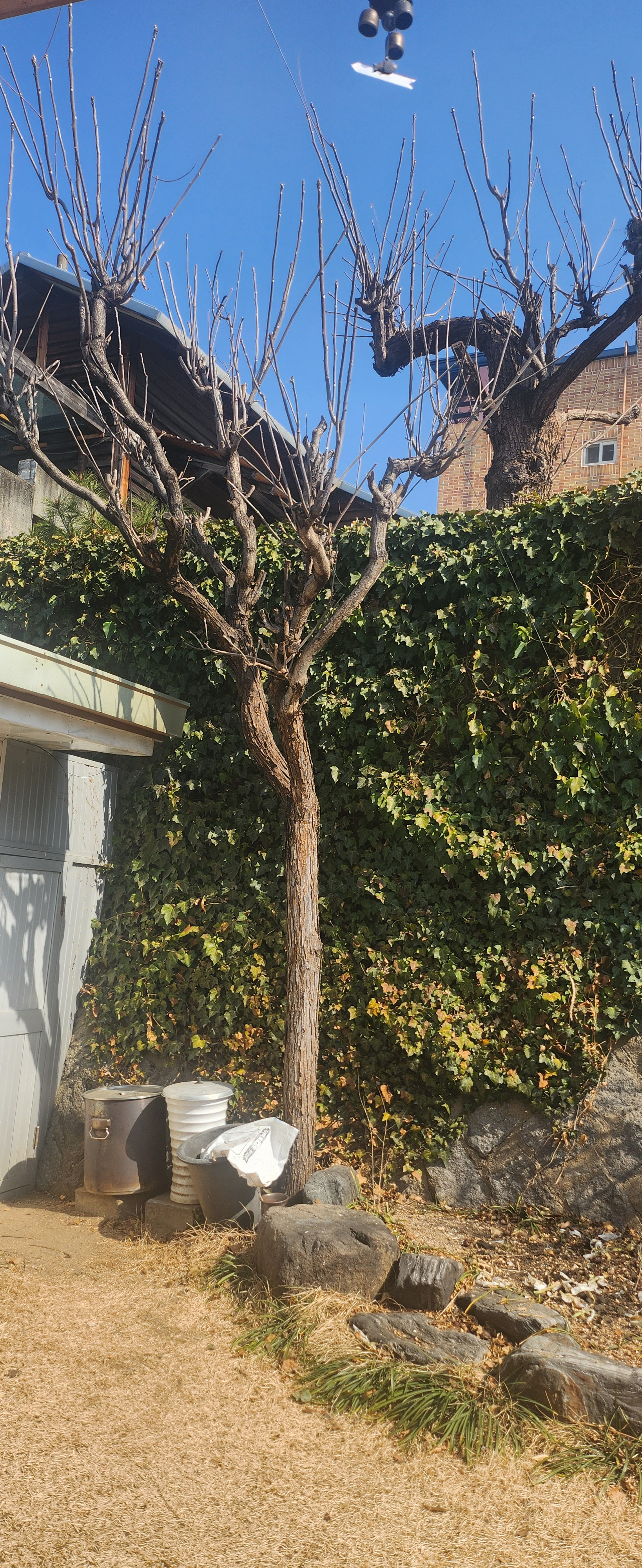 제가 2017년 4월12일에 담 위에서 가죽순을 따다 옆집 잔디밭으로 떨어진 가죽나무입니다.