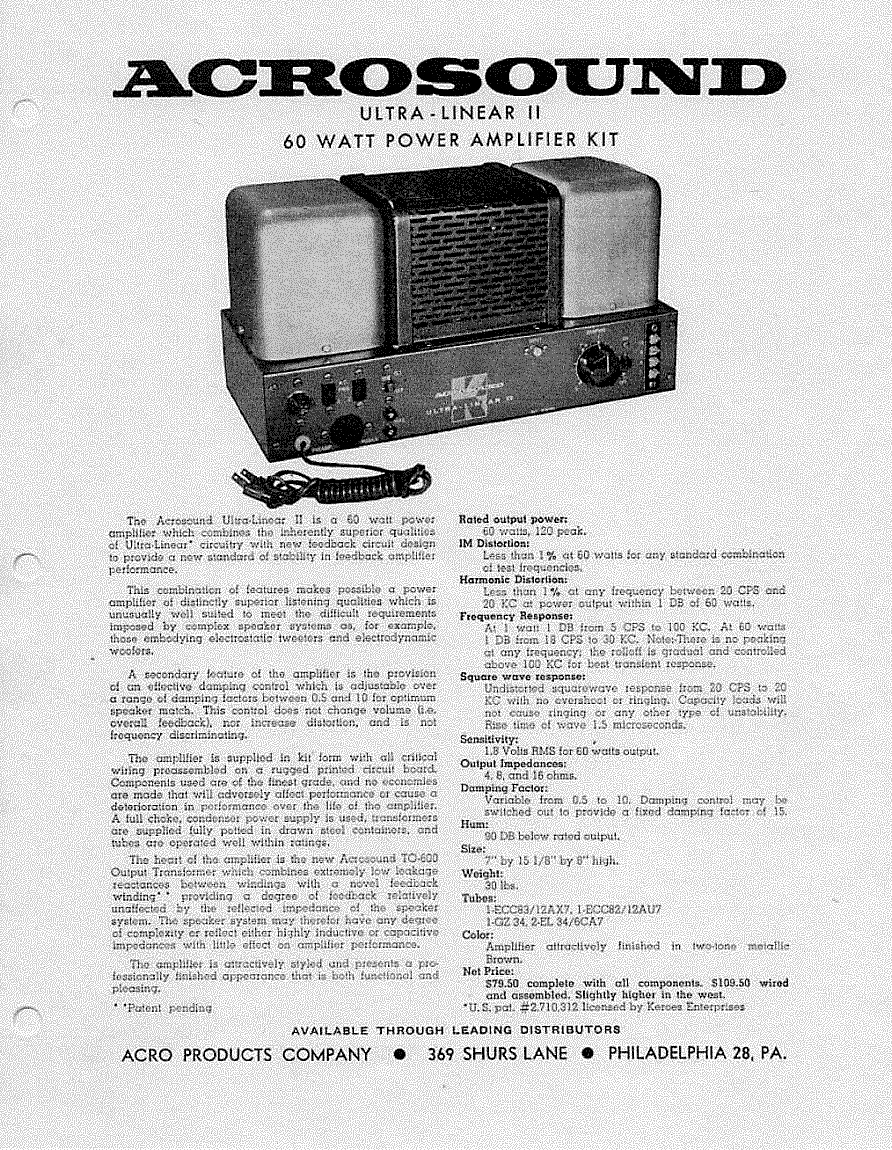 ACROSOUND는 David Hafler와 Herb Keroes 가 공동으로 미국 필라델피아에 세운 회사입니다. 이 회사는 1950년에 Alan Blumein이 발명한 Ultra-linear회로에 사용하는 고품질의 출력트랜스를 제조하여 오디오 앰프 자작애호가들에게 팔았습니다. 이 회사는 각종 진공관에 쓰는 Ultra-linear 회로를 개발하여 키트형태와 완성품 앰프로 만들어 팔기도 했습니다.