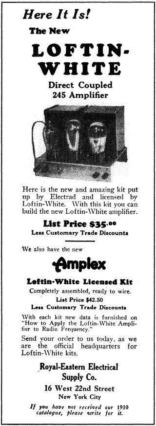 미국의 해군사관학교 출신인 1885년 생 Edward. H. Loftin 과 작가인 1901년생 S.Young White는 1929년에 전압증폭단과 전력증폭단을 직결하여 커플링 컨덴서가 없는 회로를 발명하였습니다.