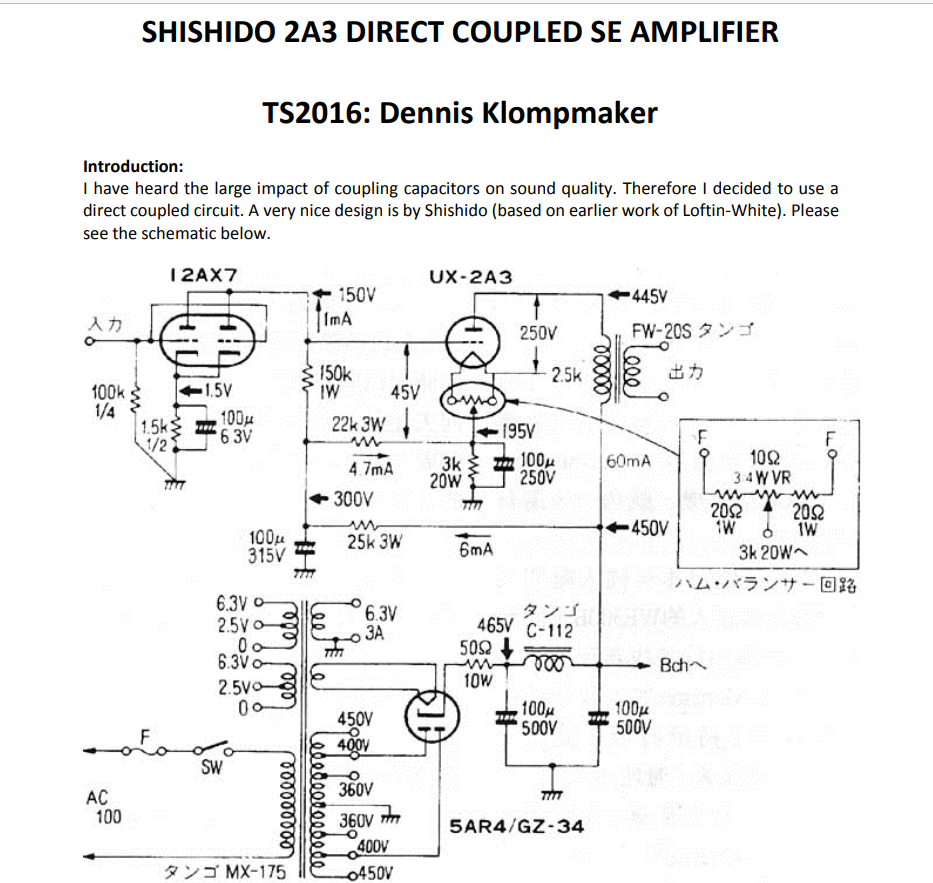 일본은행에서 퇴직한 은행가인인데 일본 오디오잡지 MJ에 자작앰프기사를 발표하고 “매력적안 진공관 앰프”란 저서를 출판해서 지금도 일본앰프 자작인들의 바이불이 됐다 하지요. 이 분의 아들이 아버지 저서 1,2,3 3편에 나오는 회로로 KIT 앰프를 만들어 팔고 있습니다. 모두 Loftin-white 직결 DHT앰프입니다.