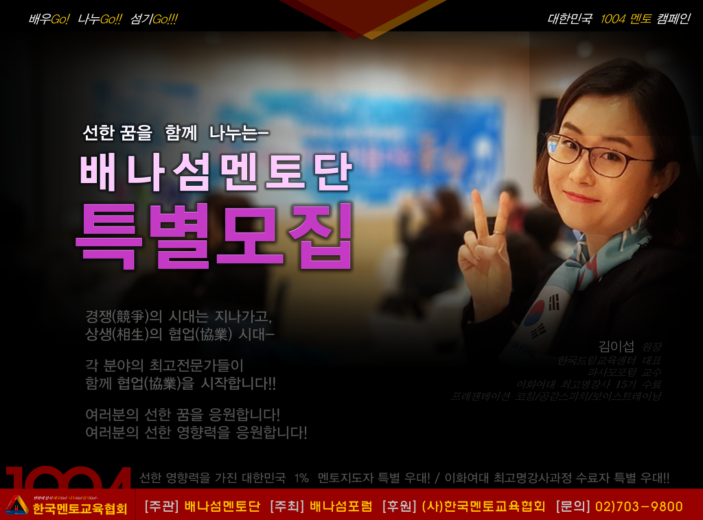 대한민국 멘토 문화 발전을 위하여 각 분야의 선한 뜻을 가진 1004명의 멘토를