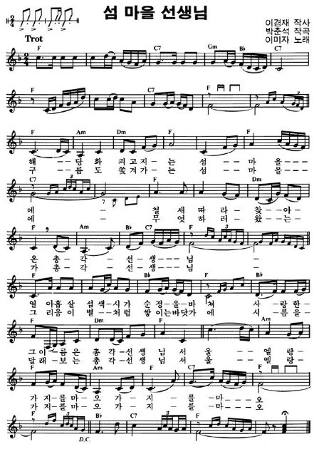 섬 마을 선생님 악보 - 이미자 노래 작성자연합회장|작성시간12.03.05|조회수7,573 목록 댓글 2 글자크기 작게가 글자크기 크게가 섬 마을 선생님 악보 - 이미자 노래 다음검색 현재 게시글 추가 기능 열기 북마크 공유하기 신고 센터로 신고 댓글 댓글 2 댓글쓰기 답글쓰기 댓글 리스트 작성자고석 | 작성시간 15.12.22 섬마을 선생님 악보 인쇄 작성자고석 | 작성시간 15.12.22 어떻게 해야 악보 인쇄되나요? 댓글 전체보기