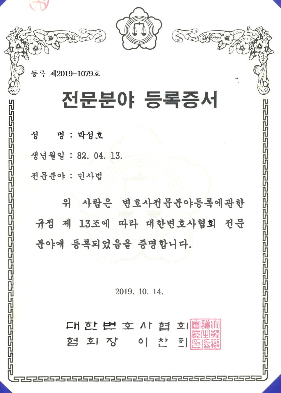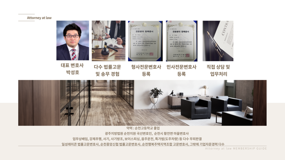 민사전문, 형사전문분야에 등록되어 있으며,직접 상담부터 법정출석에 이르기까지