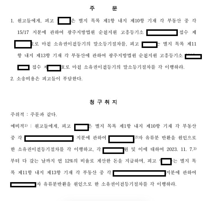 [민사] 순천, 여수, 광양 변호사 - 의사무능력(치매)에 따른 원인무효에 기한 소유권말소등기청구소송 전부 승소 성공사례