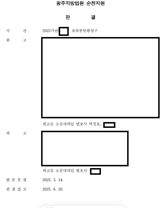 소송비용도 피고들이 부담하라는 내용의 원고 전부 승소판결을 선고하였습니다.